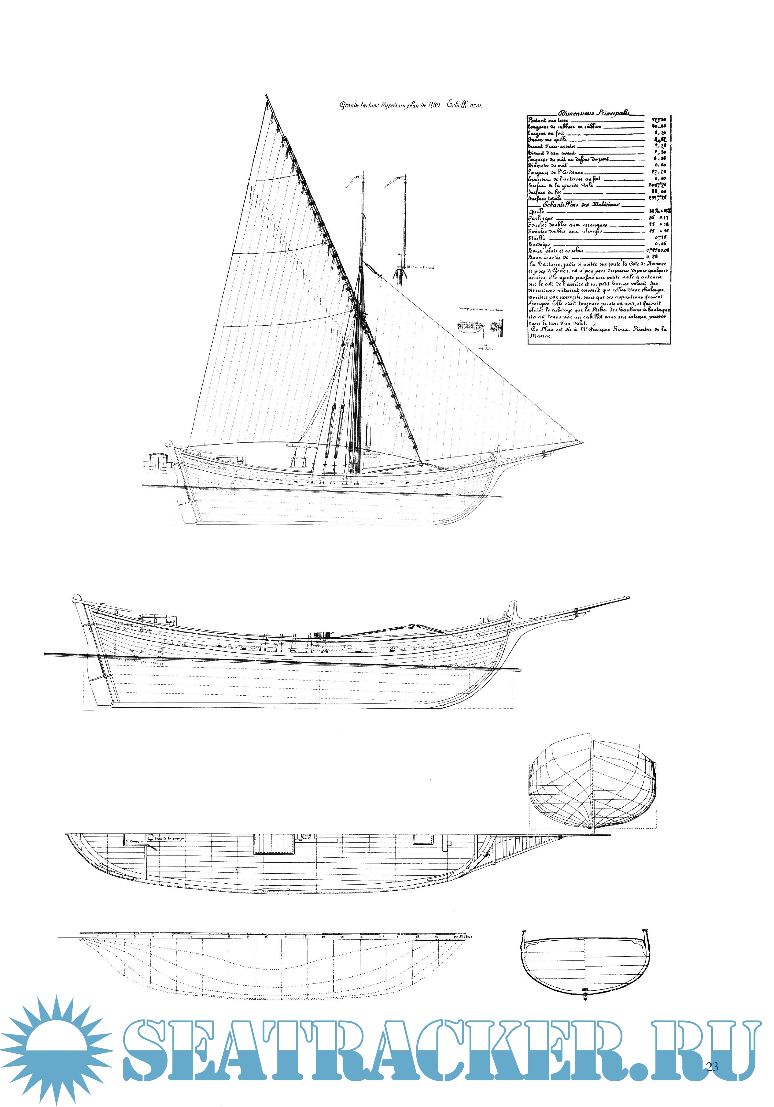 Люгер "Le Coureur" 1776 (чертежи) - Jean Boudriot, Hubert Berti [1985, JPEG]