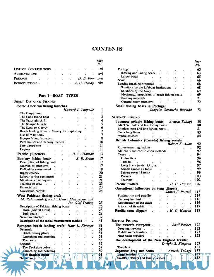 Description: This is the first of three volumes, covering types of boats for various fishing methods, combined fishing and research vessels, marine architecture with regard to hull shape and safety at sea, engines, propulsion systems, control devices and deck equipment, factory vessels. The books are based on the International Fishing Boat Congress of the Food and Agriculture Organization in Paris and Miami.