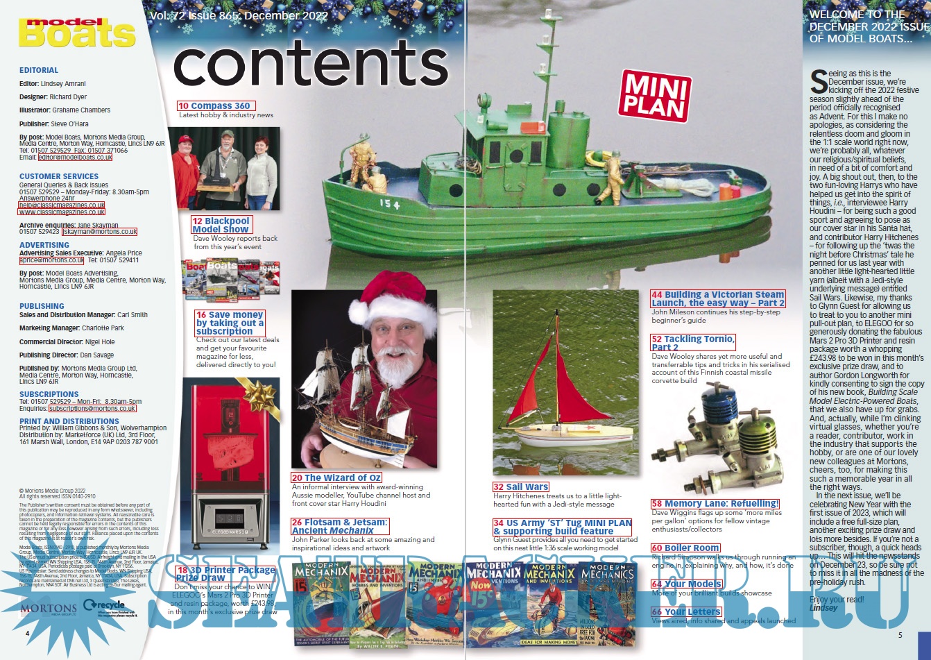 Description: Model Boats magazine is a practical and informative read for those with a love for the hobby. It covers the latest news and views from the various clubs and associations around the country, useful hints, tips and step by step guides for those interested in the art of constructing a model boat as well as tests and recommendations of new boats and tools. Floating along behind these are great special features examining in depth different models from narrowboat to destroyer!