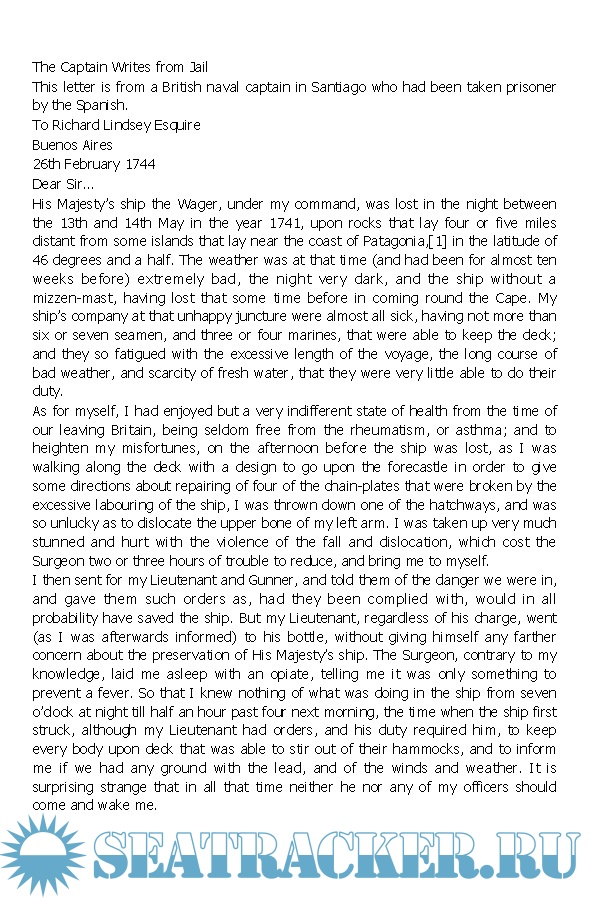 Britain and Spain were at war, and the Wager was part of a small British squadron sent to extend the battle to their Spanish possessions in the South Seas. Unfortunately, there were no accurate charts of the west coast of South America, and much of the navigation was determined by guesswork. Vicious hurricane-force winds wrecked the Wager, separating it from the squadron. Starvation, exhaustion, hypothermia, and drowning quickly claimed most of the soldiers who survived the wreck. The rest rose up against the unpopular captain and set off in an open boat with no chart, resulting in one of the greatest survival voyages as the castaways made their way 2,500 nautical miles back to Britain.