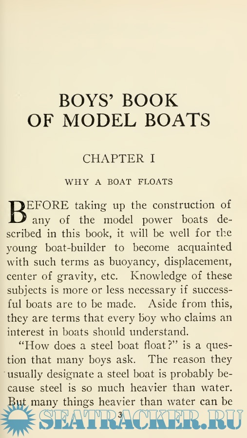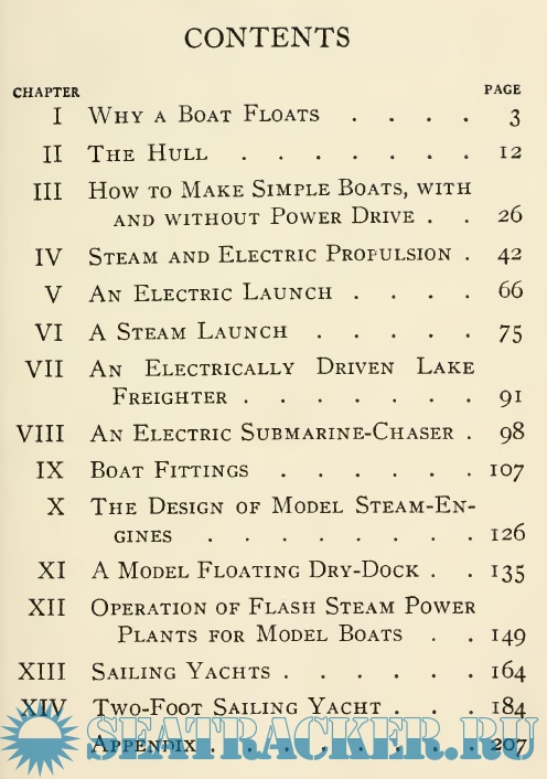 Year: 1920 Language: english Author: Raymond Francis Yates Genre: Guide Publisher: The Century Co. Format: PDF Quality: Scanned pages Pages count: 246 Description: This book is the result of that vow, and the author earnestly hopes that it will gladden the heart of every boy who builds and sails a boat. There are probably few happier moments in a boy's life than when he sees his little model steamer proudly make her way across the park pond, or his little sailboat respond to the summer breeze.