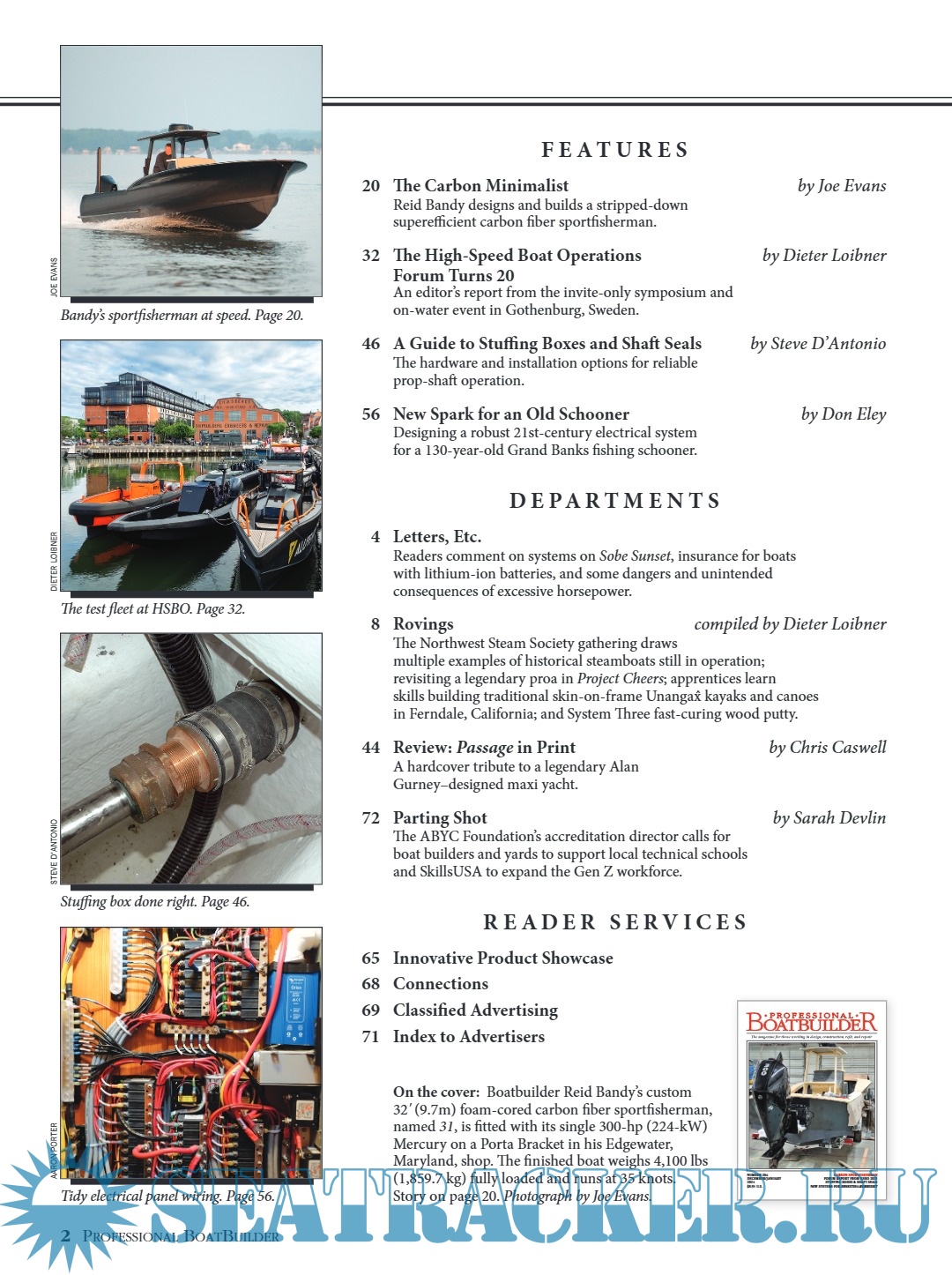 Description: Professional BoatBuilder magazine is written and edited for boatbuilders, repairers, designers, and surveyors.Published six times a year, by WoodenBoat Publications, Inc., it focuses on materials, design, and construction techniques and repair solutions chosen by marine professionals.Regular technical articles provide detailed, real-world examples to improve the efficiency and quality of their work. Professional BoatBuilder has an audited circulation of 24,000 readers, worldwide.
