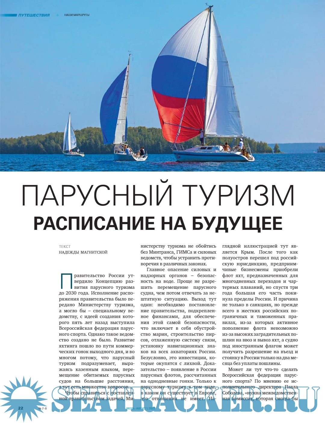 Описания плаваний и походов под парусами, тесты парусных яхт и практические советы капитанам, информация о технических новинках и новости с дистанций крупнейших мировых регат, интервью с ведущими яхтсменами и яхтенными конструкторами мира, а также исторические хроники – все это сегодня представляет своим читателям журнал Yacht Russia. Отдельно стоит упомянуть злободневные материалы, касающиеся болевых точек развития паруса в России.