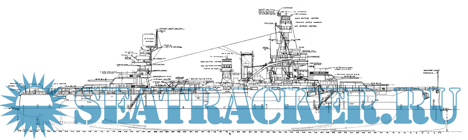Архивные чертежи броненосца USS Colorado BB45 (США)1944 год