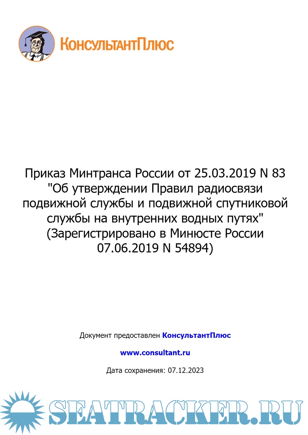 Описание: Приказ Минтранса России от 25.03.2019 N 83 "Об утверждении Правил радиосвязи подвижной службы и подвижной спутниковой службы на внутренних водных путях".
