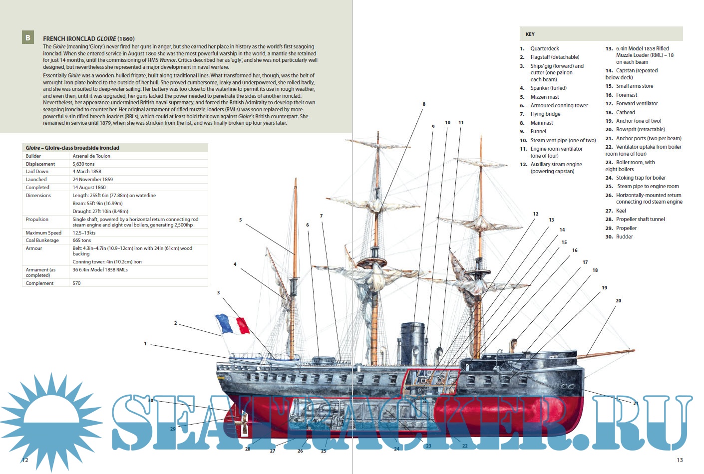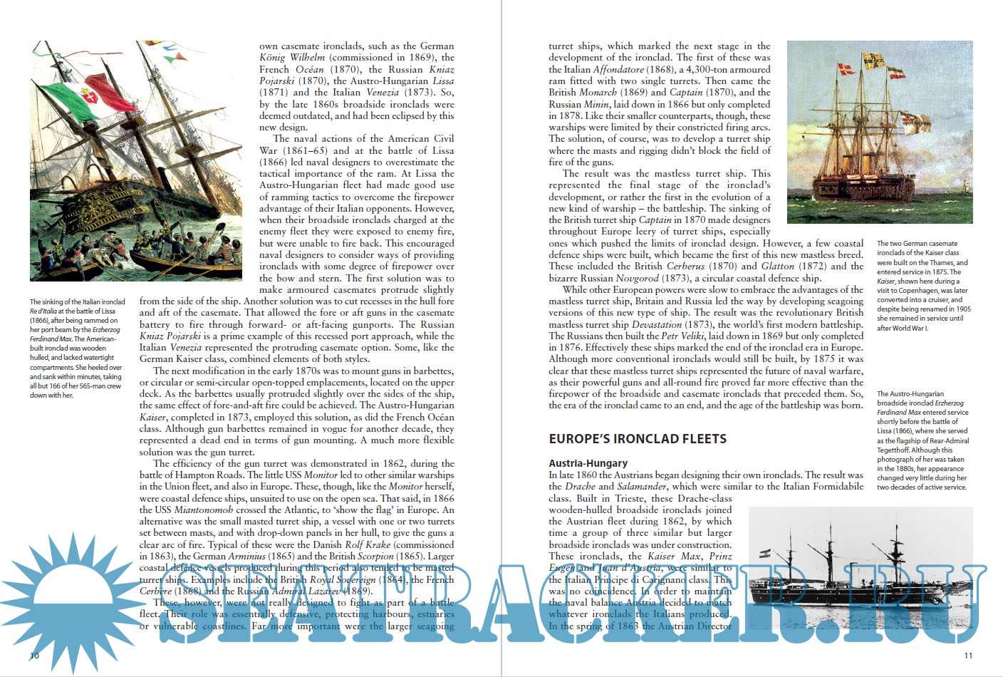 Year: 2019 Language: english Author: Angus Konstam Genre: History Publisher: Osprey Publishing Edition: Osprey New Vanguard 269 Format: PDF Quality: eBook Pages count: 49 Description: From Spain to Russia, and from Ottoman Turkey to Bismarck's Prussia, this book explores 15 years that transformed European naval warfare. When the Gloire slid down the Toulon slipway in 1859, it changed sea power forever. With this ship, the world's first oceangoing ironclad, France had a warship that could sink any other, and which was proof against the guns of any wooden ship afloat. Instantly, an arms race began between the great navies of Europe – first to build their own ironclads, and then to surpass each other's technology and designs. As both armour and gun technology rapidly improved, naval architects found new ways to mount and protect guns. The ram briefly came back into fashion, and Italian and Austro-Hungarian fleets fought the ironclad era's great battle at Lissa. By the end of this revolutionary period, the modern battleship was becoming recognizable, and new naval powers were emerging to dominate Europe's waters.