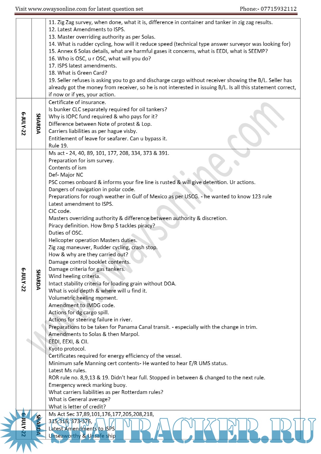 Orals Question Bank (July 2023) for ASM (Advanced Shipboard Management) / Master's Mercantile…
