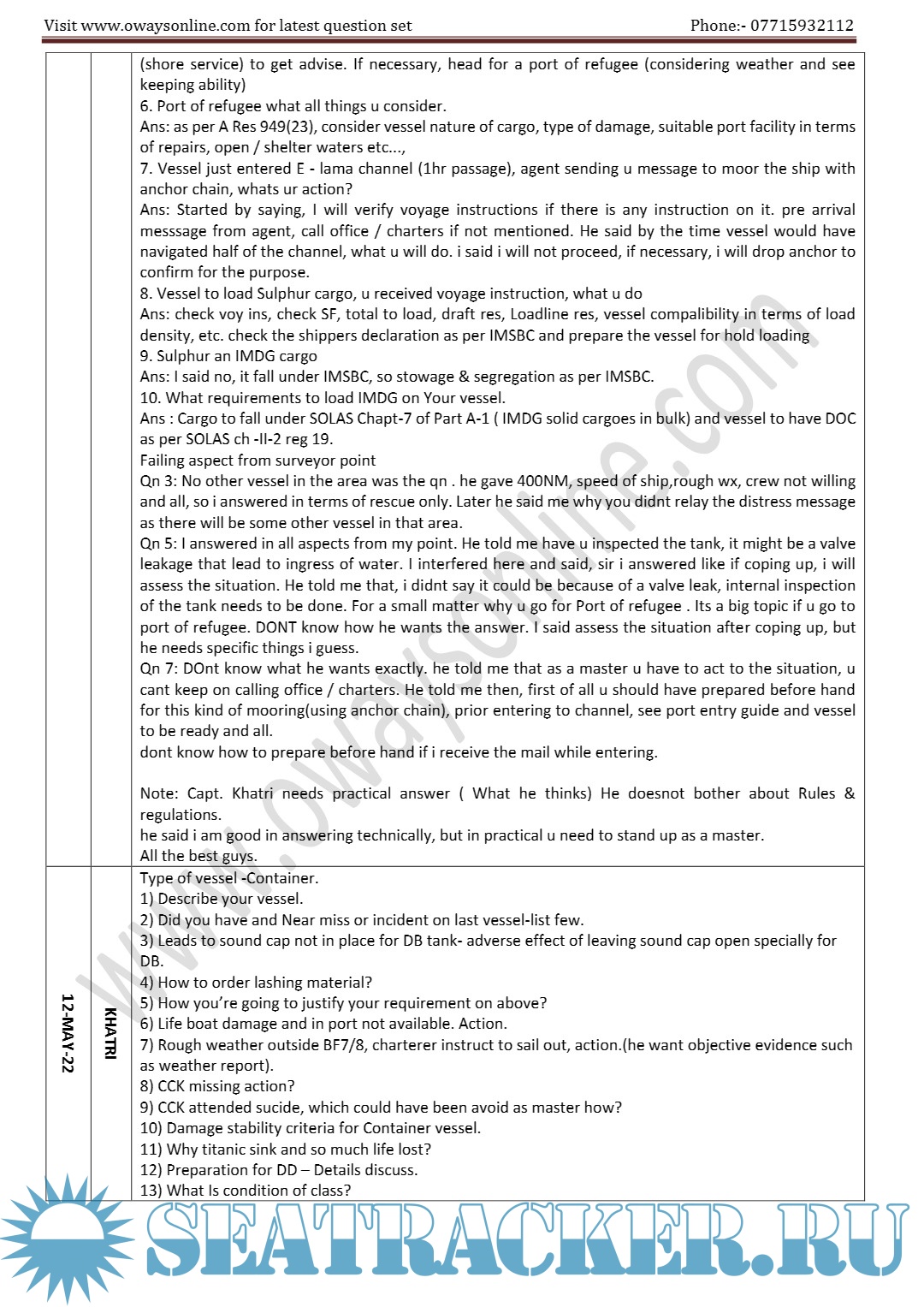 Orals Question Bank (May 2023) for ASM (Advanced Shipboard Management) / Master's Mercantile…