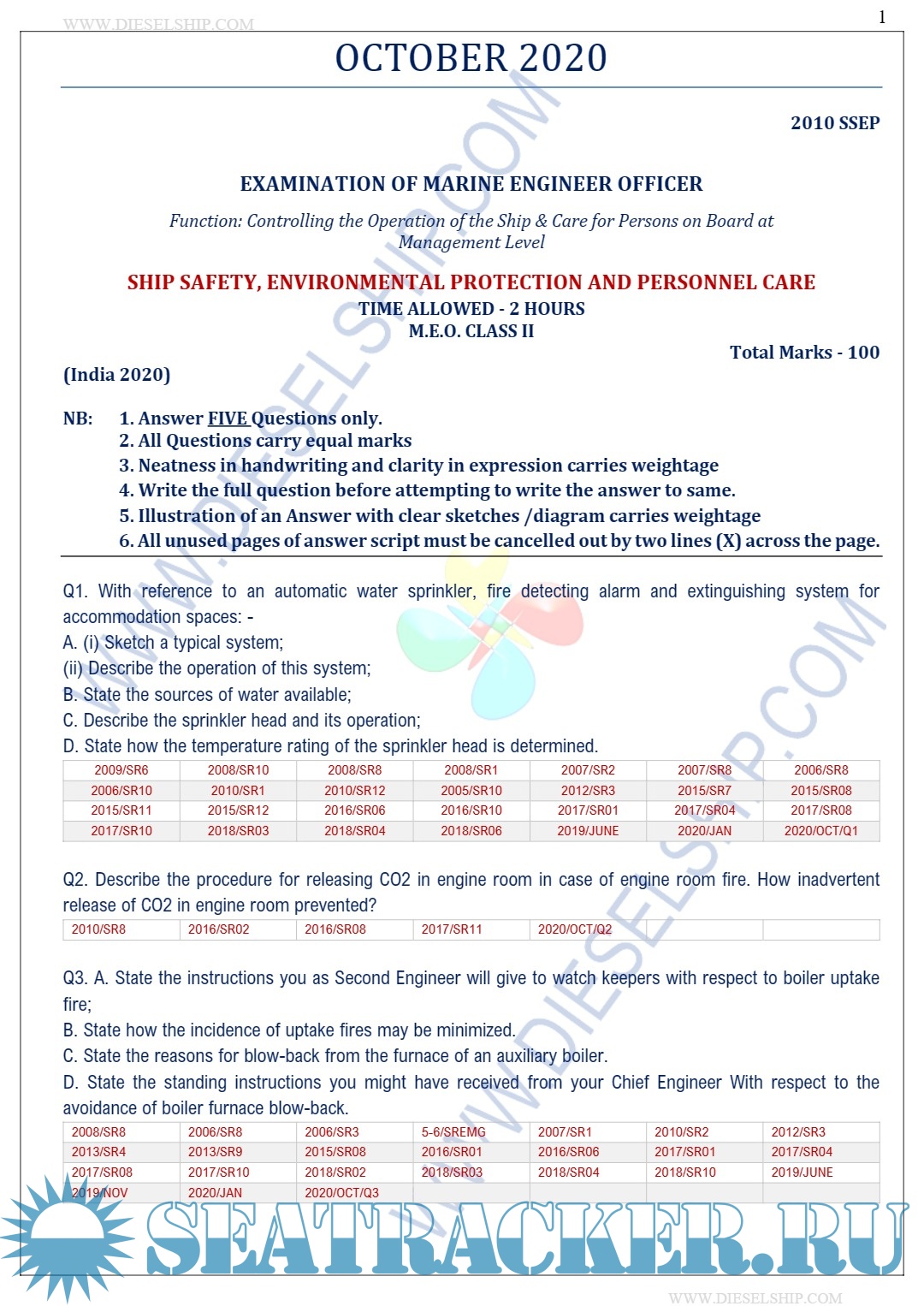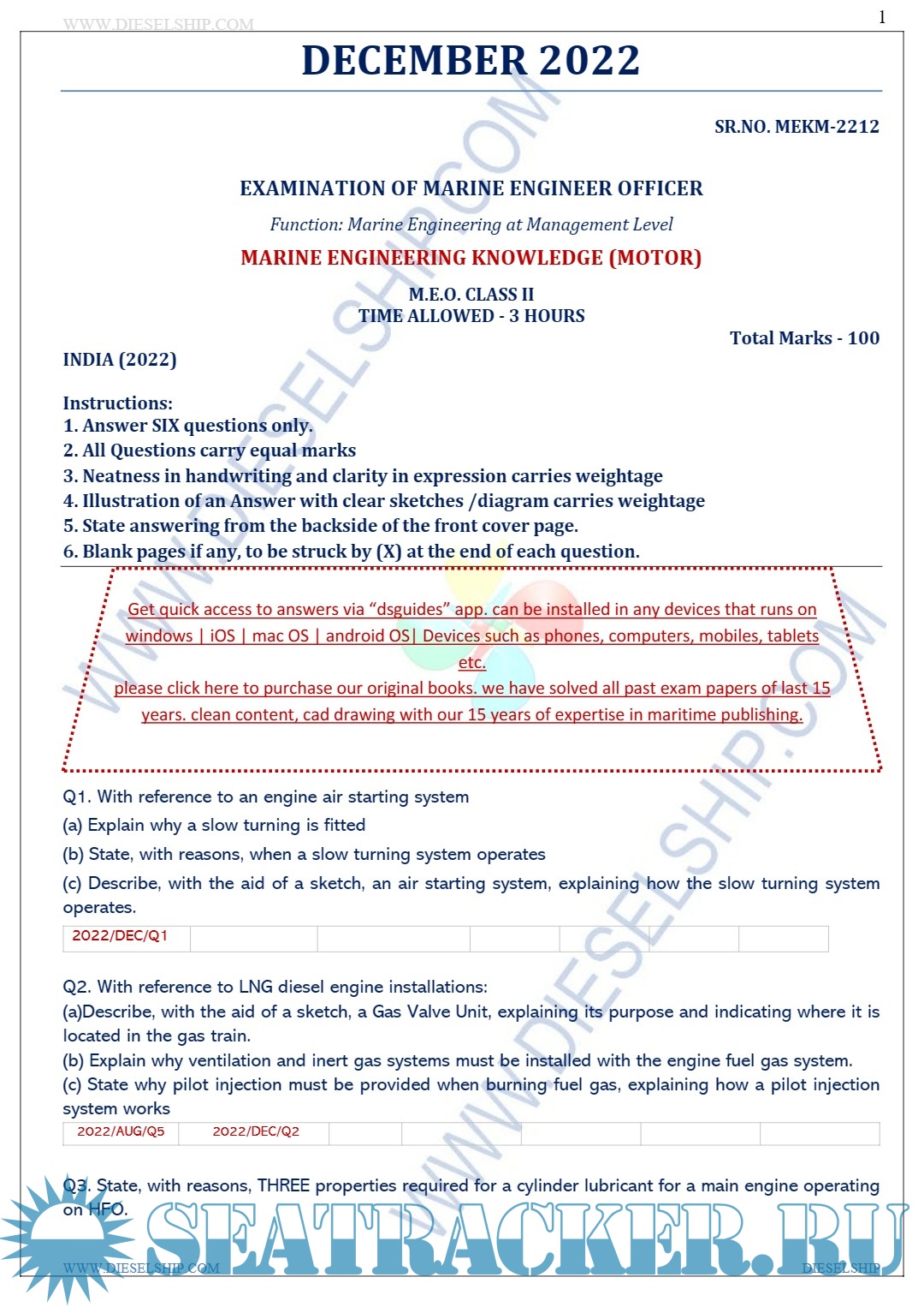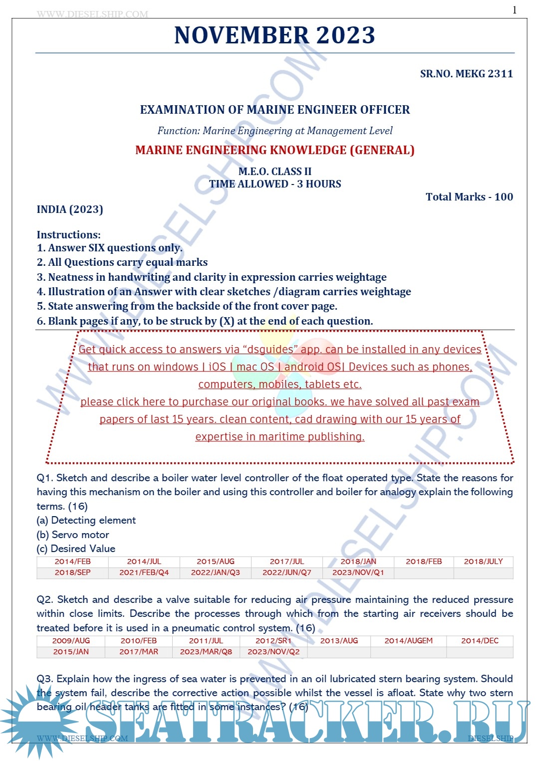 Description: M.E.O. Class II Question Paper set for Mercantile Marine Department (MMD), D.G. Shipping India Exams.