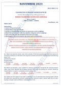 Question Paper Set for Marine Engineering Officer (M.E.O.) Class II (November 2023) MMD Examinations, India