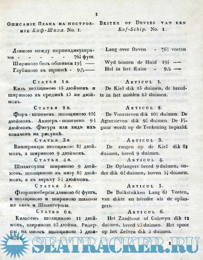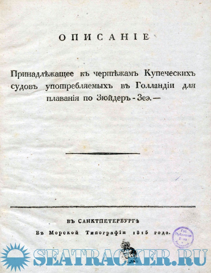 Описание принадлежащее к чертежам купеческих судов, употребляемых в Голландии для плавания по Зюйдер-Зеэ