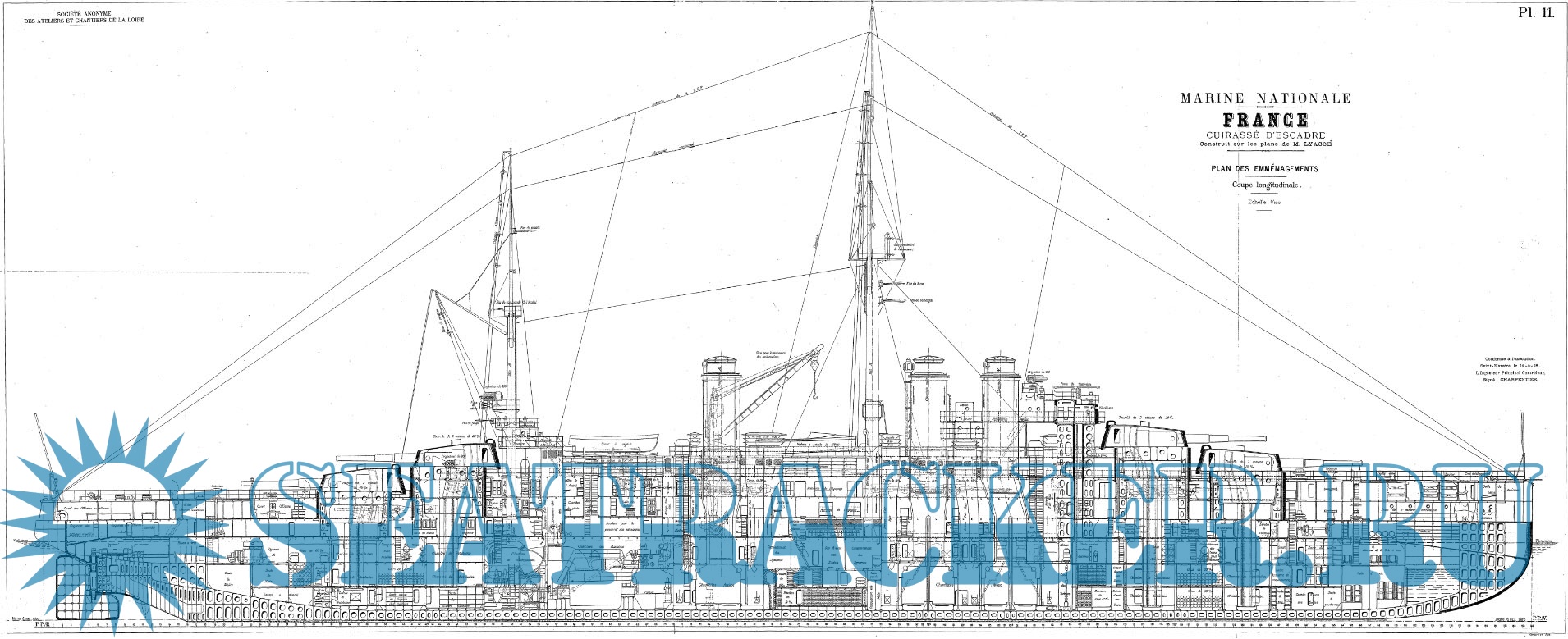 Архивные чертежи французского эскадренного броненосца FRANCE 1912 год