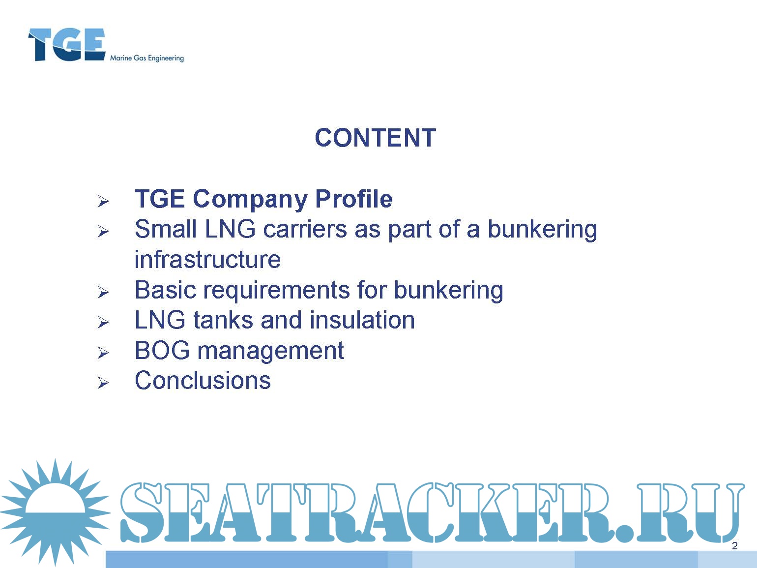 Description: This presentation gives a short overview of the technology and process of LNG bunkering.