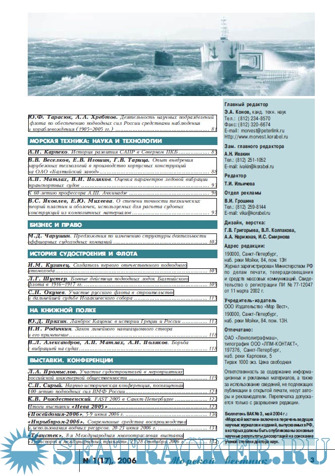 Описание: Информационные, аналитические, научно-технические и исторические статьи по морской технике и технологиям, экологической безопасности судостроения и судоходства, освоению океана и шельфа, безопасности мореплавания, истории флота и мореплаваний, морскому бизнесу и праву.