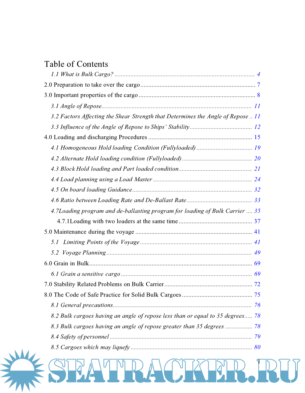 Description: Bulk Cargo: A short introduction for loading, unloading and stowage of solid Bulk Cargoes including Draught Survey.