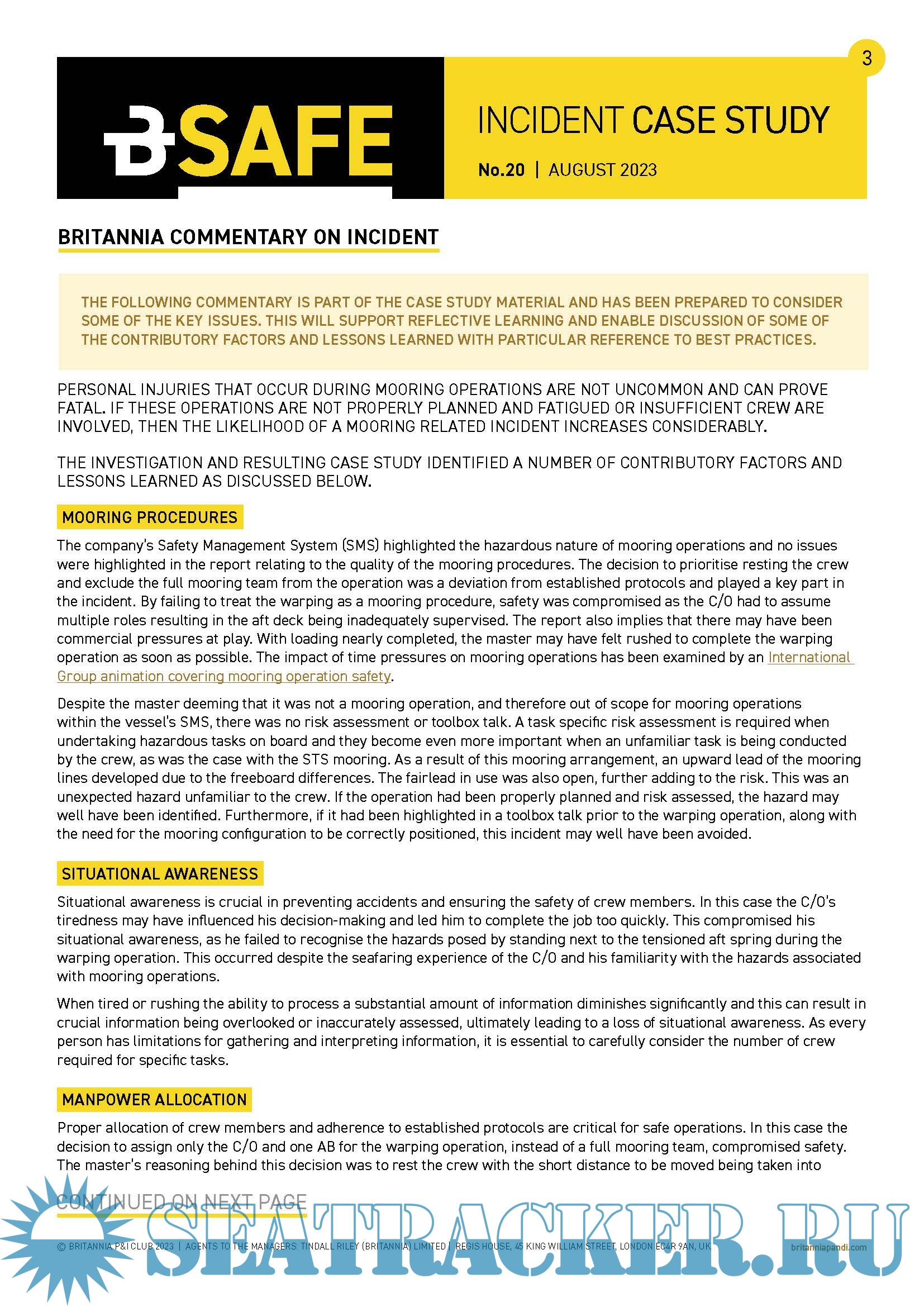 BSafe: Incident Case Study No.23 (May) - Britannia P&I Club [2024, PDF]