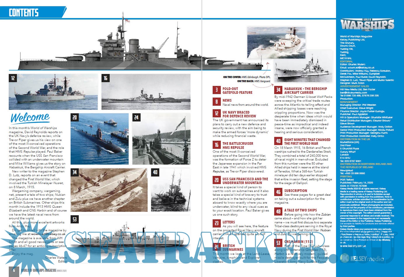 Year: 2020 Language: english Author: Charles Waters (Edtor) Genre: Periodical (magazine) Edition: 2020-03 Format: PDF Quality: eBook Pages count: 56 Description: This 56-page magazine will cover such battles and battleships starting with the steel-clad warships of the 1900s, up to the modern day rulers of the seas – the highly sophisticated aircraft carriers and submarines of today.We will have a Naval news section from around the world, features on famous people, conflict at sea, fascinating historical accounts and exciting places of interest that you can visit today. World of Warships will also feature some excellent naval paintings from the brushes and easels of leading Naval artists, plus superb, highly detailed, fold-out, triple gatefolds, featuring profile artworks in every issue, created by Andrew Hay.The main thrust will of course be warships, encompassing destroyers, dreadnoughts, frigates, carriers, submarines et al, and their place in global naval history.