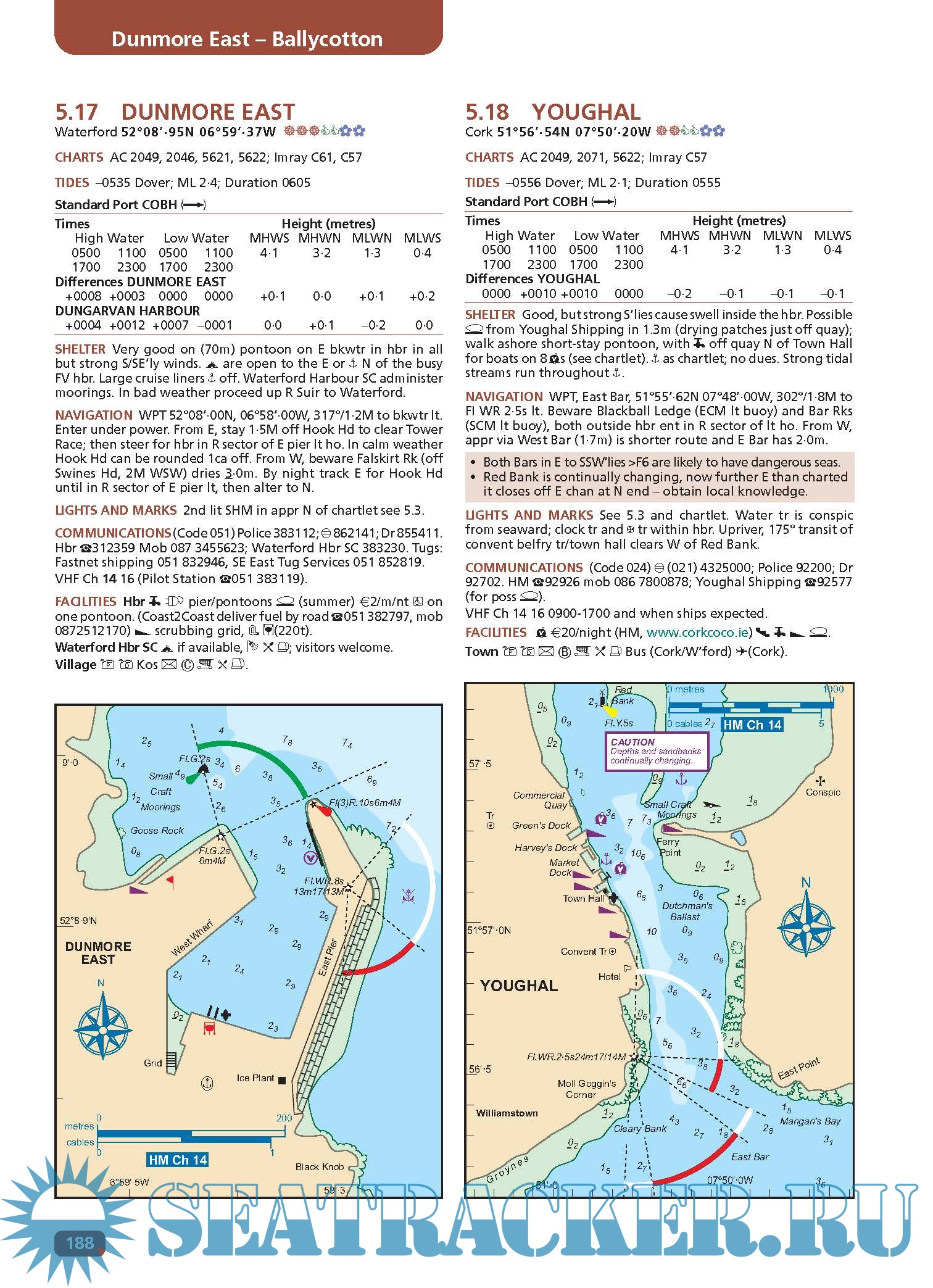 Completely updated for 2024, it offers ready access to essential navigation information by virtue of its clear layout and user friendly format. Topics include seamanship, pilotage, tide tables, safety procedures, navigation tips, radio, lights, waypoints, weather forecast information, communications, Mayday and distress procedures. The large type size and clear layout, including full colour harbour plans and diagrams throughout, makes information easy to read even in adverse conditions. It is the complete guide for both Irish and Welsh mariners as well as those cruising the UK west coast.