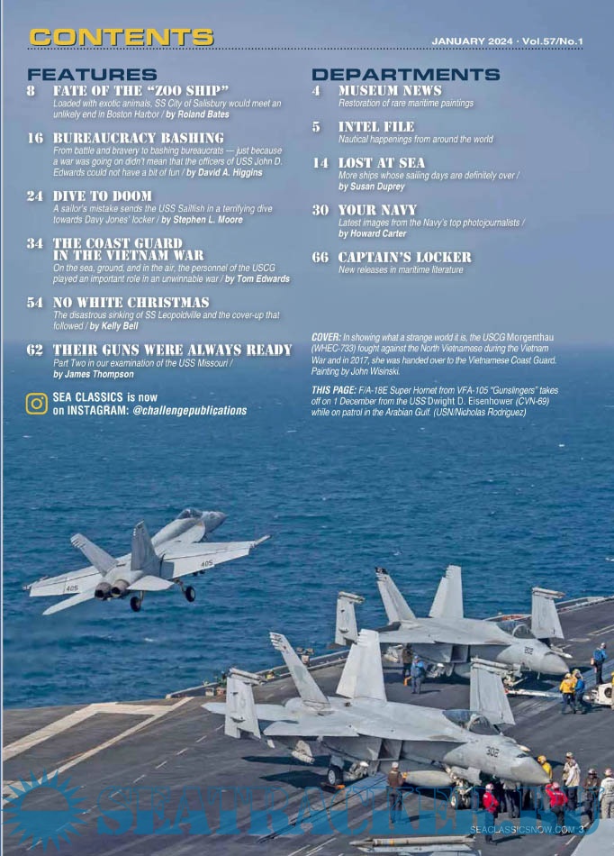 Description: Read about the world’s major sea battles and first-hand accounts from the men who fought and lived through them. From the early days of sailing vessels to the post-Cold War nuclear navies of today, Sea Classics has it all.