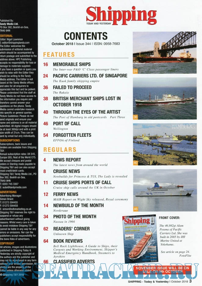 Year: 2018 Language: english Author: Shipping Today and Yesterday Genre: Periodical (magazine) Edition: 2018-10 Format: PDF Quality: eBook Pages count: 63 Description: Shipping T&Y is a monthly magazine for the shipping enthusiast offering up-to-date information,topical and in-depth historical articles alongside images, many of which are exclusive to the magazine.