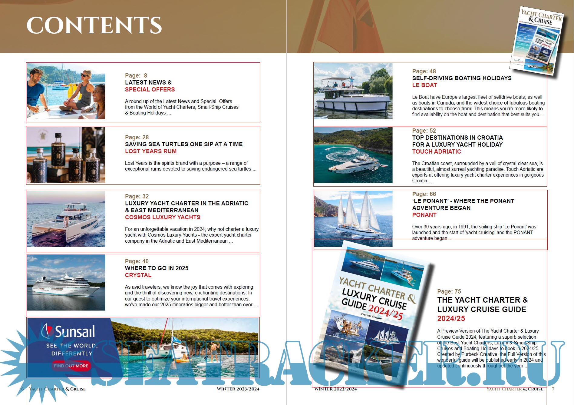 Description: Yacht Charter & Cruise Magazine is the No.1 best-selling magazine on these huge platforms dedicated toYacht Charters, Small-Ship Cruises and Boating Holidays Worldwide.