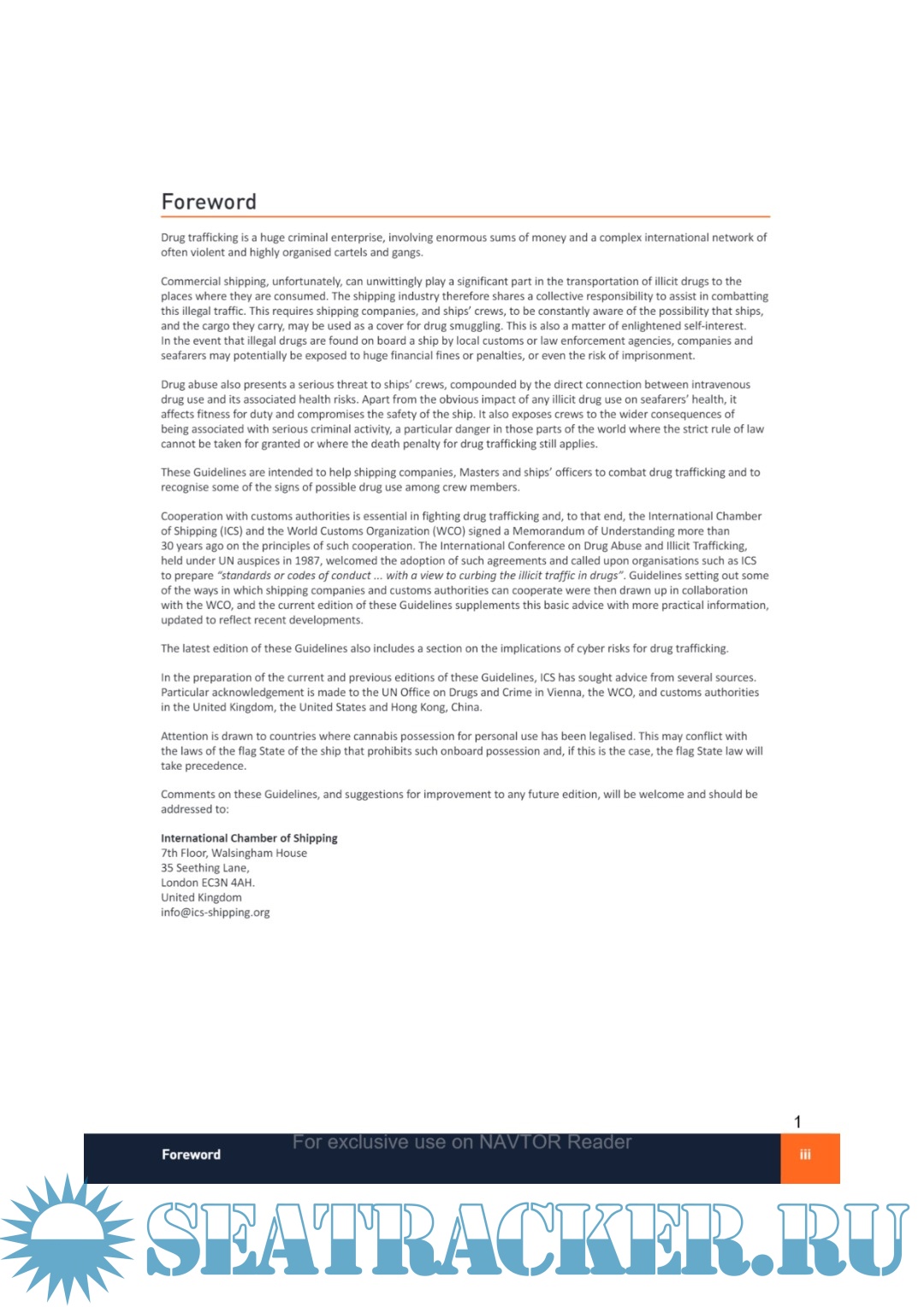 The guidance contained in this publication demonstrates how to protect the ship and the crew and reduce the risk of drug trafficking occurring on board.