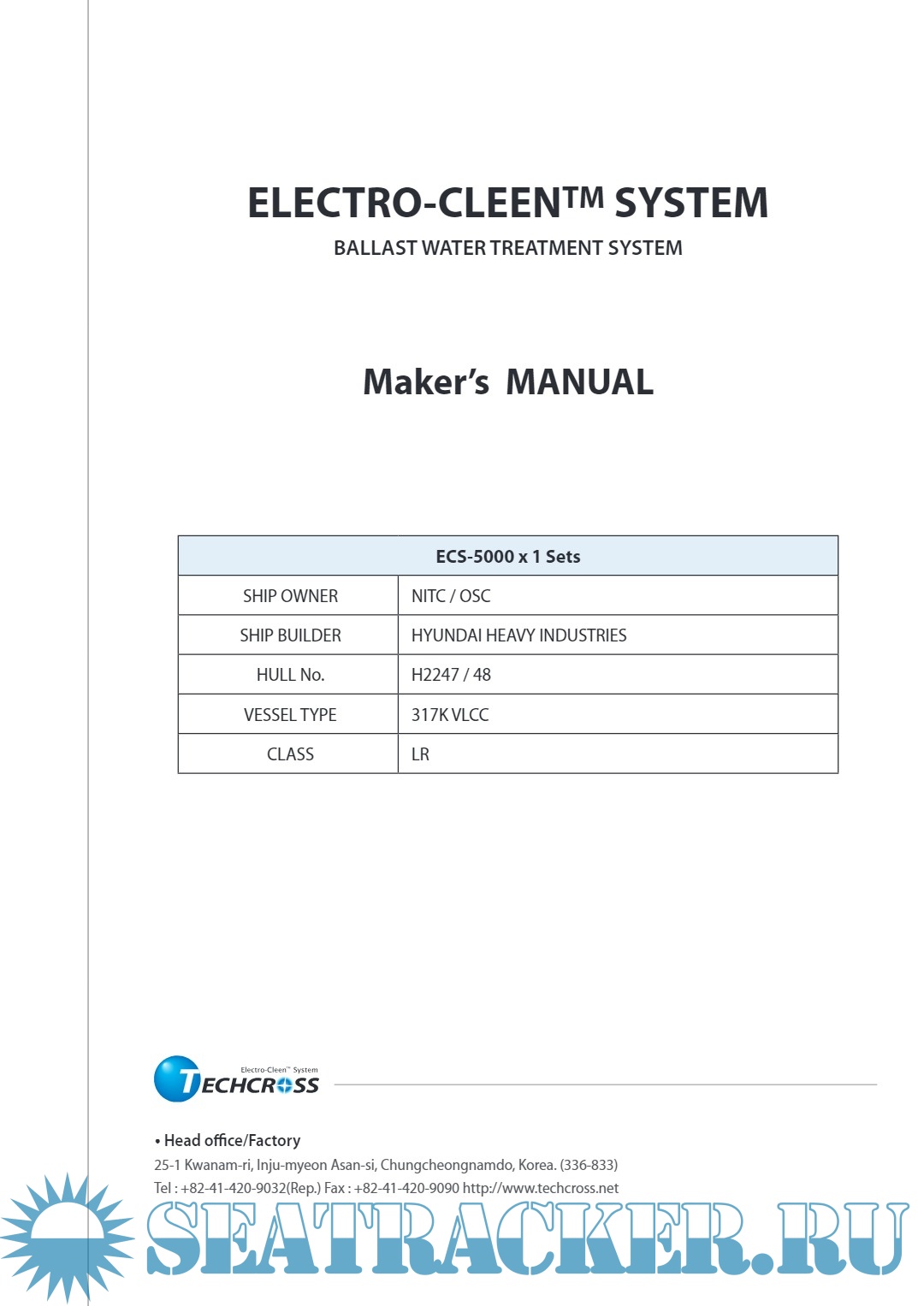 Additional info: Electro Cleen (Tech Cross) BWTS Manual for the onboard operation and troubleshooting.