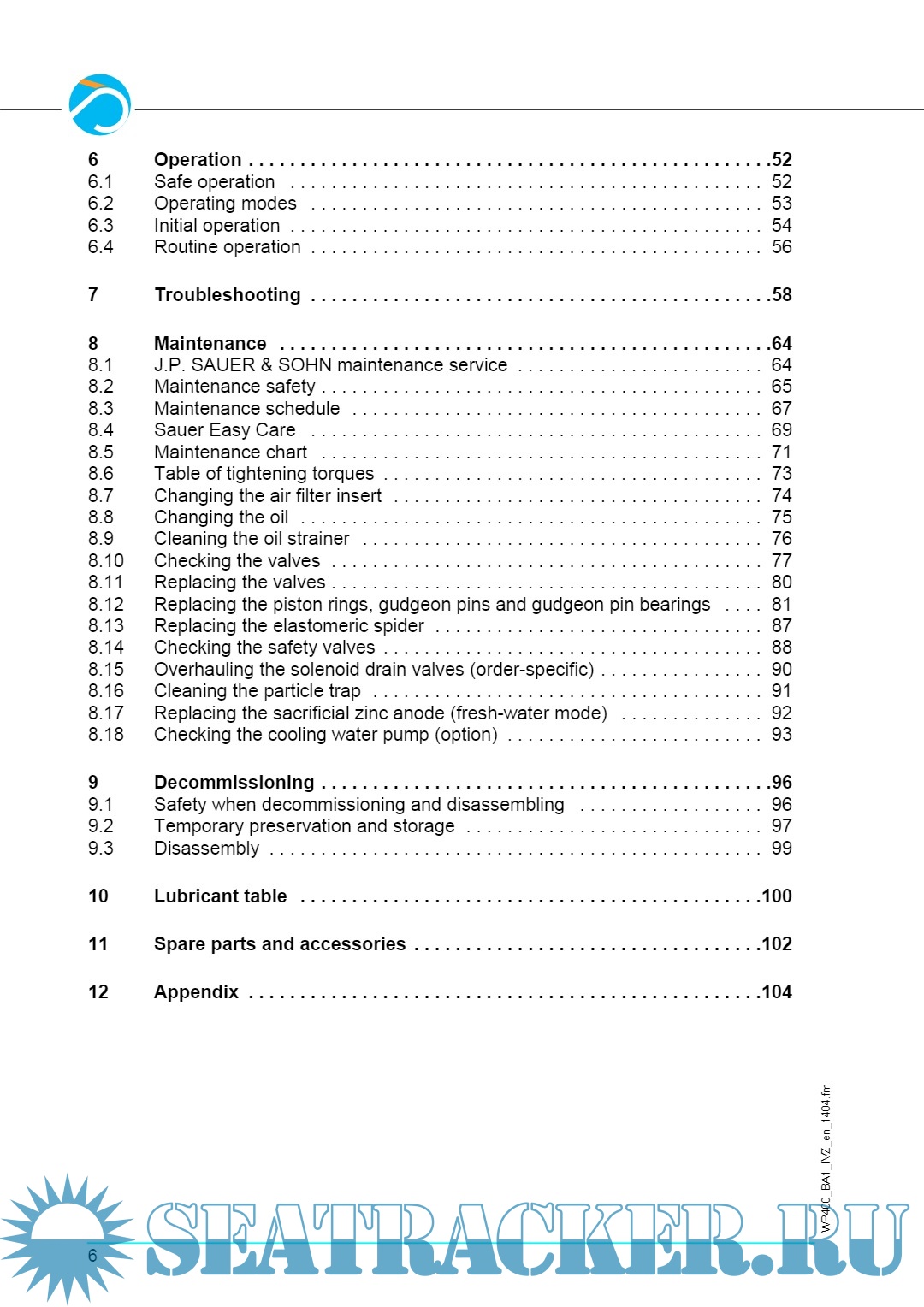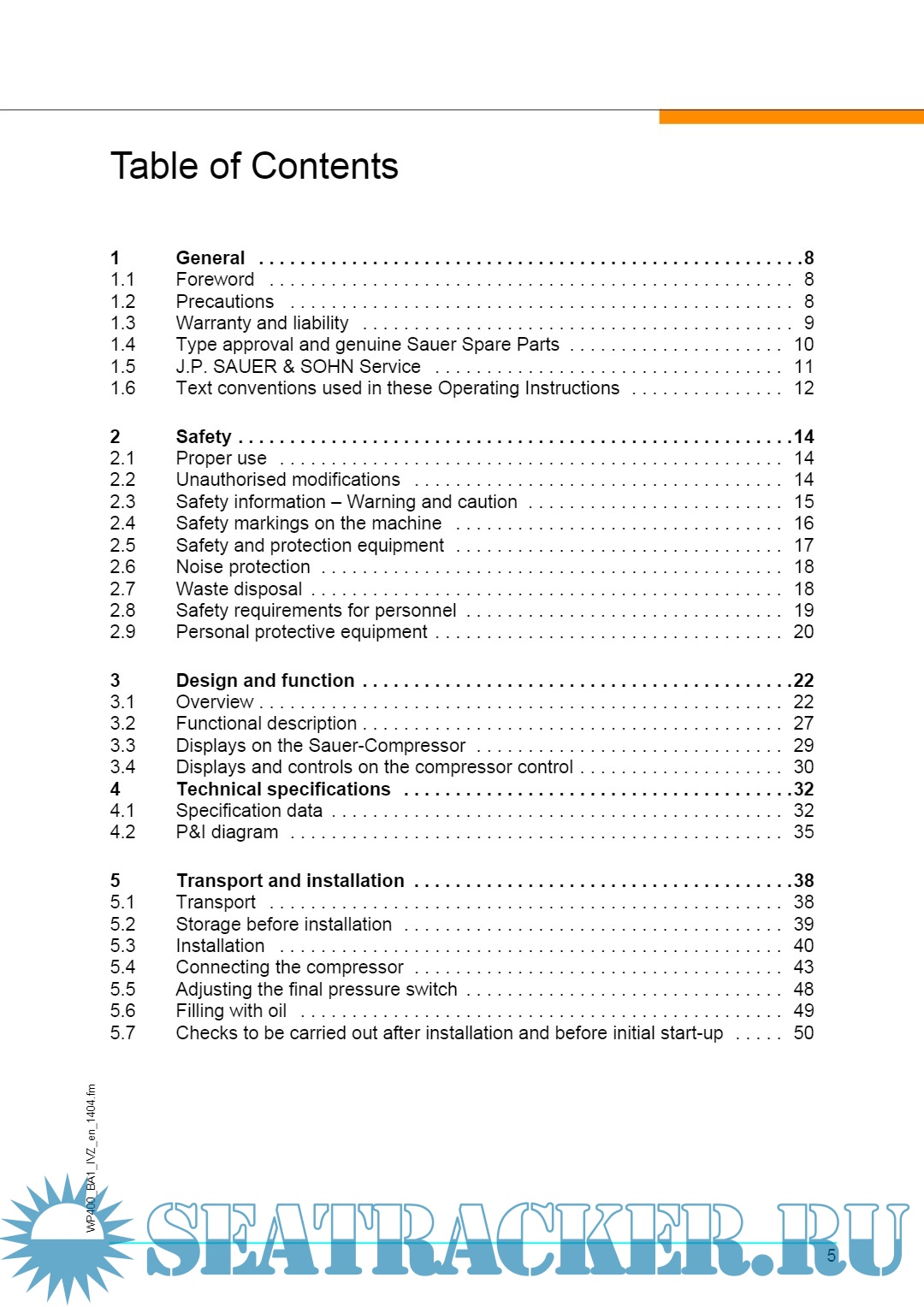 Sauer Air Compressor - WP400 Operations Manual