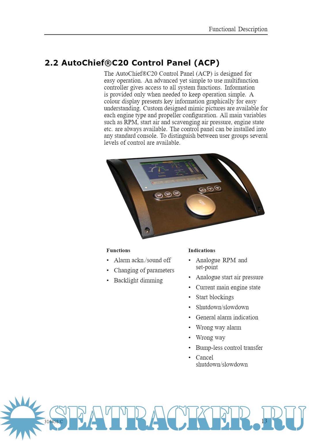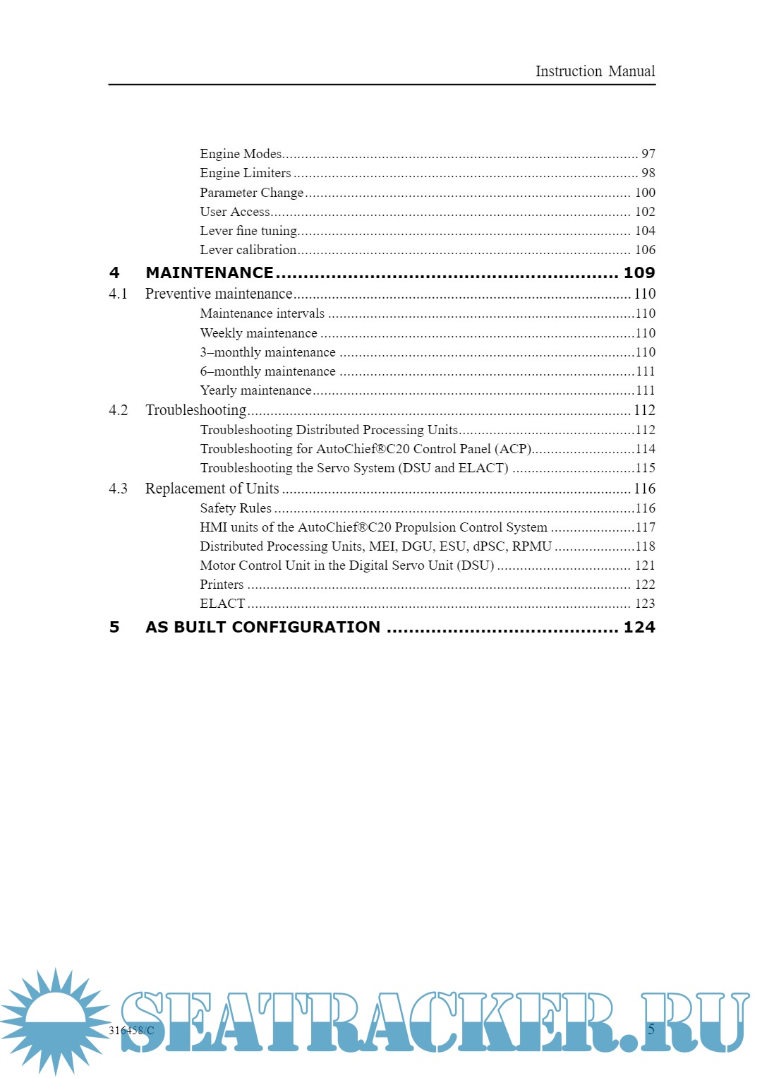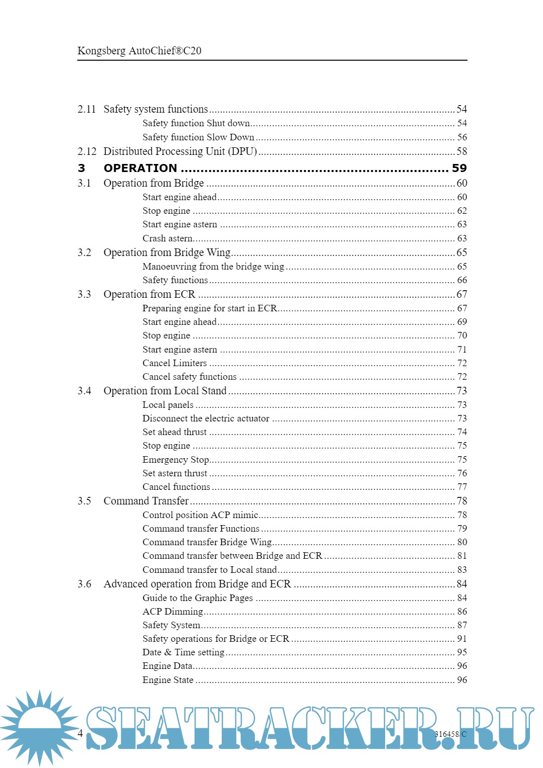 Description: This instruction manual for the AutoChief®C20 Propulsion Control System is intended as a guide for the ships personnel while operating the engine on a daily basis in transit between ports, assuming a standard configuration for MAN BW MC Engines with Fixed Pitch Propeller.