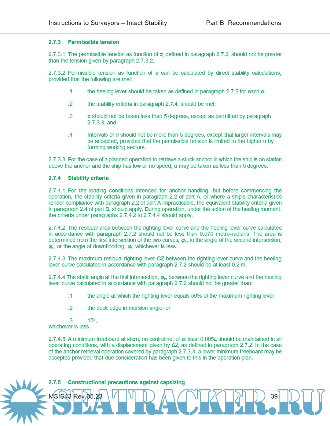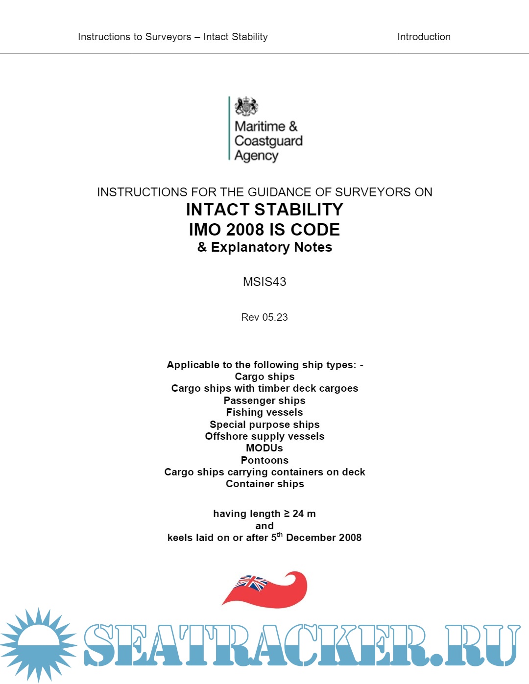 INSTRUCTIONS FOR THE GUIDANCE OF SURVEYORS ON INTACT STABILITY IMO 2008 CODE & Explanatory Notes- 2023