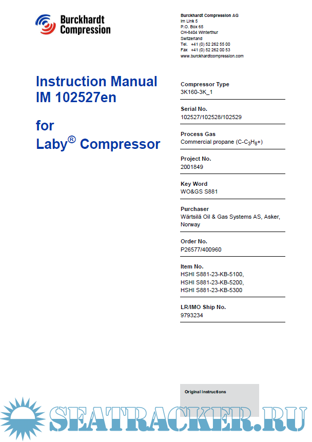 Instruction Manual Cargo Compressor. Burckhardt Compression AG.