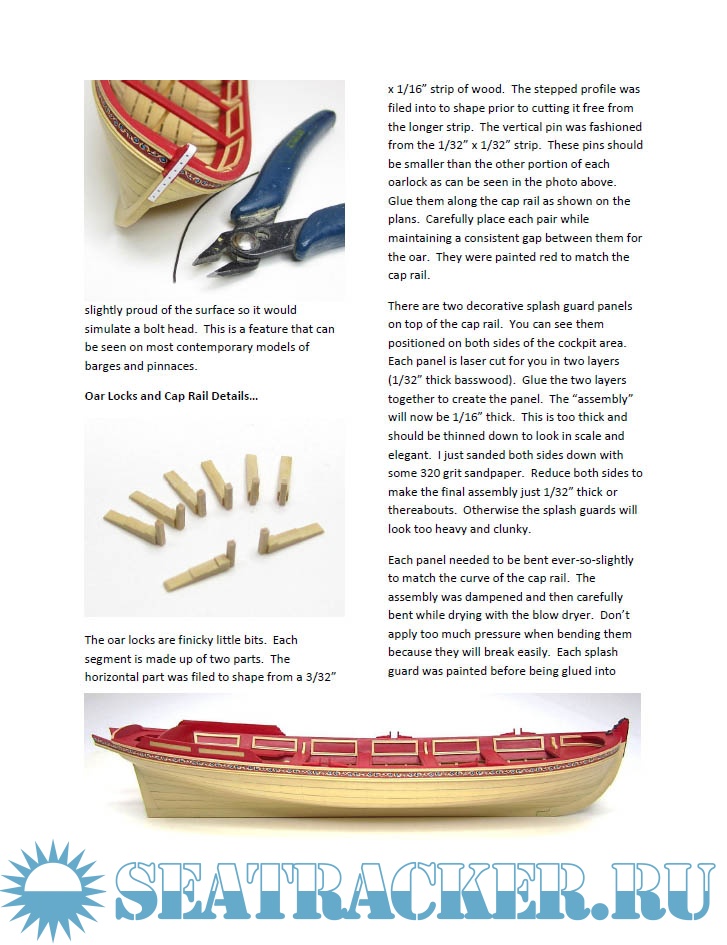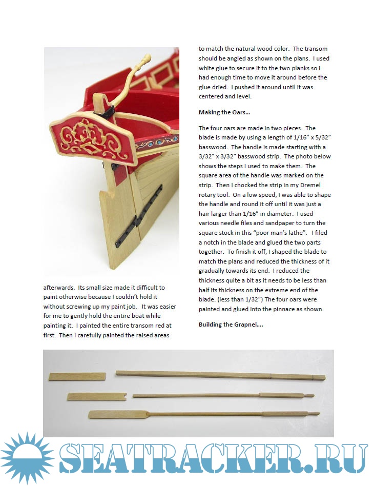 Year: 2012 Language: English Author: Chuck Passaro Genre: Guide Format: PDF Quality: eBook Pages count: 25 Description: Having recently designed the Model Shipways kit for an 18th century longboat, I wanted to follow up that project with something that would complement it. I wanted to create another small boat from the period as I find very enjoyable to build. Searching for inspiration, I came across some models for 18th century pinnacles. There were large 32 foot pinnacles and many smaller examples to look at. I was particularly fond of one model from the NMM in Greenwich. It was a model of a 21 foot long single banked pinnace from around 1750. It would make an excellent subject for this new project. It has a paneled interior and some decorative merits. I found an original draft that was almost identical to this small 4 oared pinnace. It didn’t take too long before I had a working set of plans that contained all of the parts for this model. At ¼” scale, a model of a 21 foot pinnace is not even six inches long. This would be very finicky to put together so I decided to double its size. I have scaled it up to ½” which should allow for more details as well.