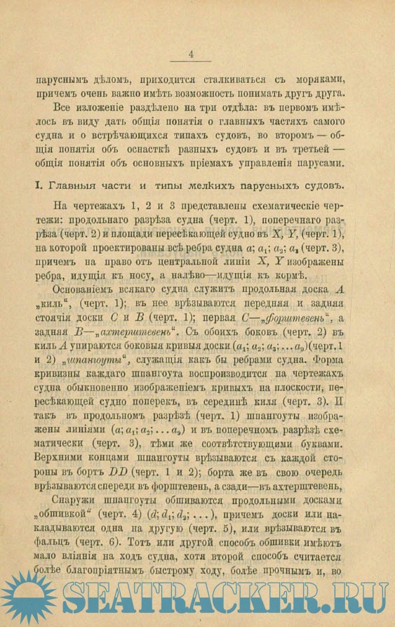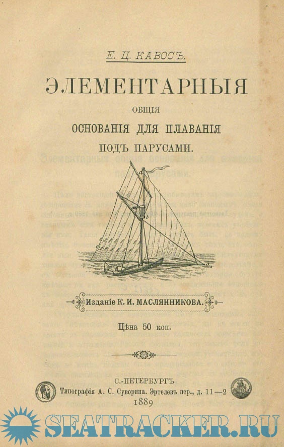 Описание: Цель настоящей статьи дать любителям парусного дела, совершенно с ним незнакомым или мало знакомым, общие основные понятия об устройстве мелких парусных судов, о главных их типах и о важнейших схемах управления ими. Такие основные понятия могут быть, по нашему мнению, полезны начинающим любителям тем, что, обладая ими, они получают: 1) знакомство с существующими типами судов; 2) возможность пользоваться сознательнее и с большей осторожностью теми судами, которые будут иметься в их распоряжении, и 3) сознательное отношение к выбору судна, к тому или другому его типу и к той или другой его парусности.