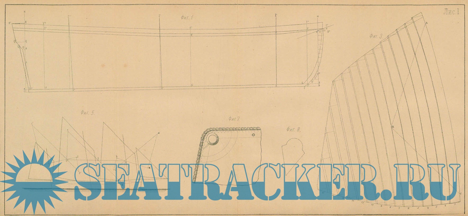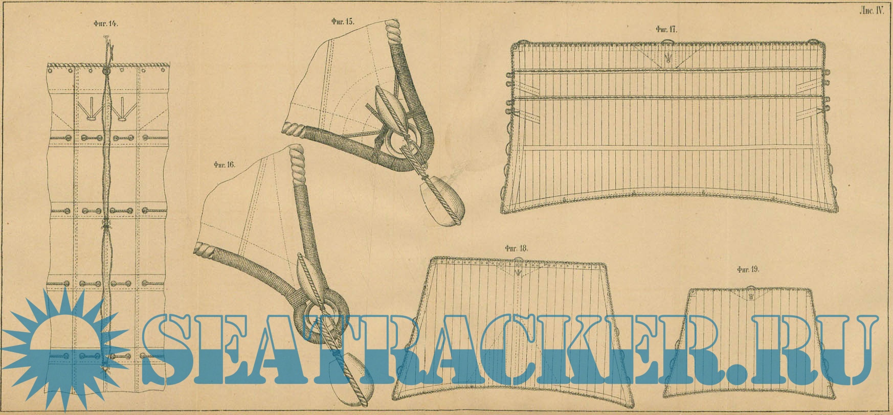 Описание: Чертежи парусов и приспособлений для их изготовления.