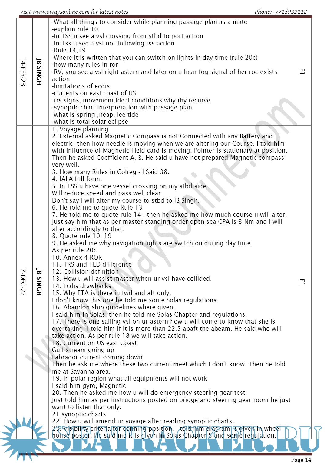 Orals Question Bank (February 2023) for Chief Mate F.G. Mercantile Marine Department (MMD), India…