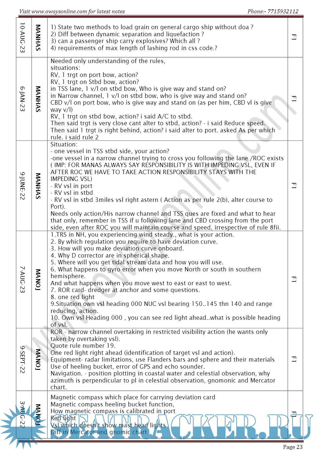 Orals Question Bank (October 2023) for Chief Mate F.G. Mercantile Marine Department (MMD), India…