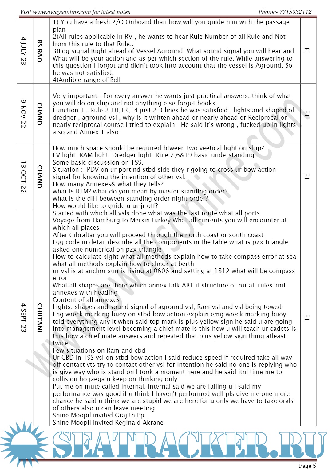 Description: Orals Question Bank for Chief Mate F.G. Mercantile Marine Department (MMD), India Examinations.Segregated as per Functions / Surveyors/ Dates.Mumbai Surveyors.