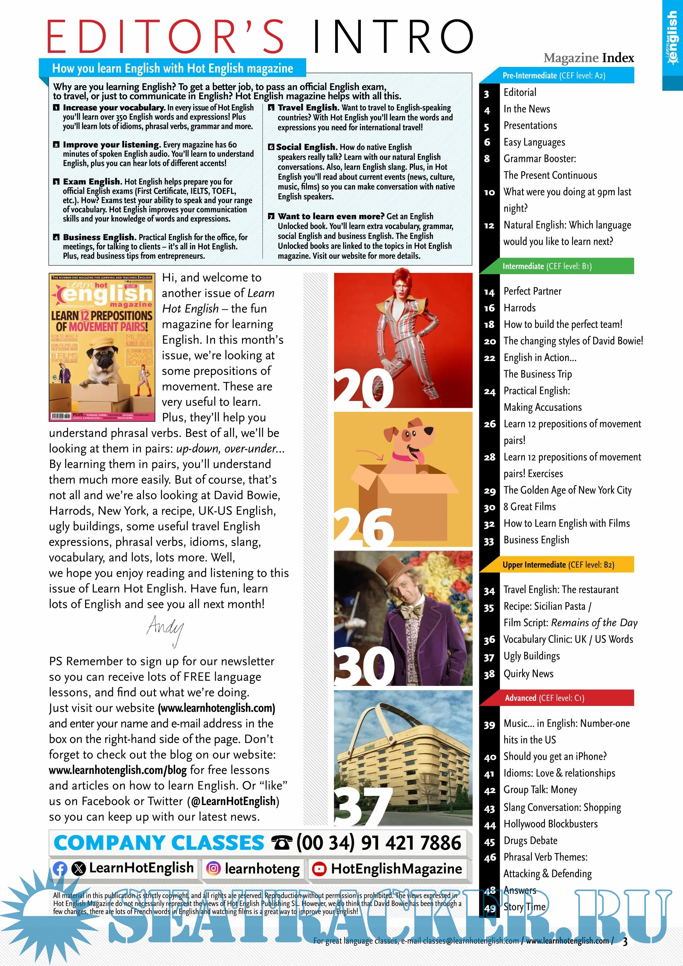 Description: Great news! The latest issue of Hot English (260) is out now! This month: Learn 12 prepositions of movement pairs!