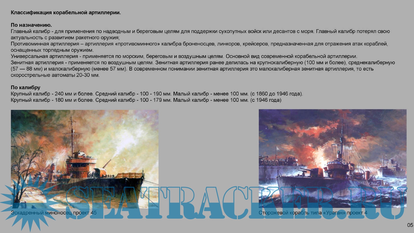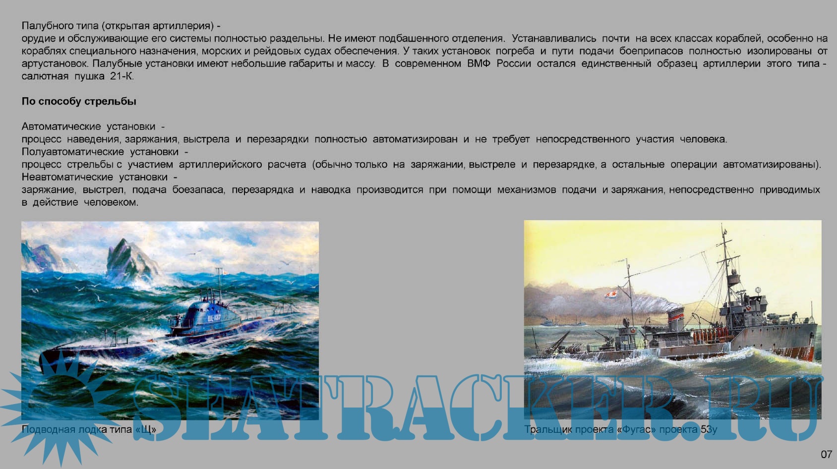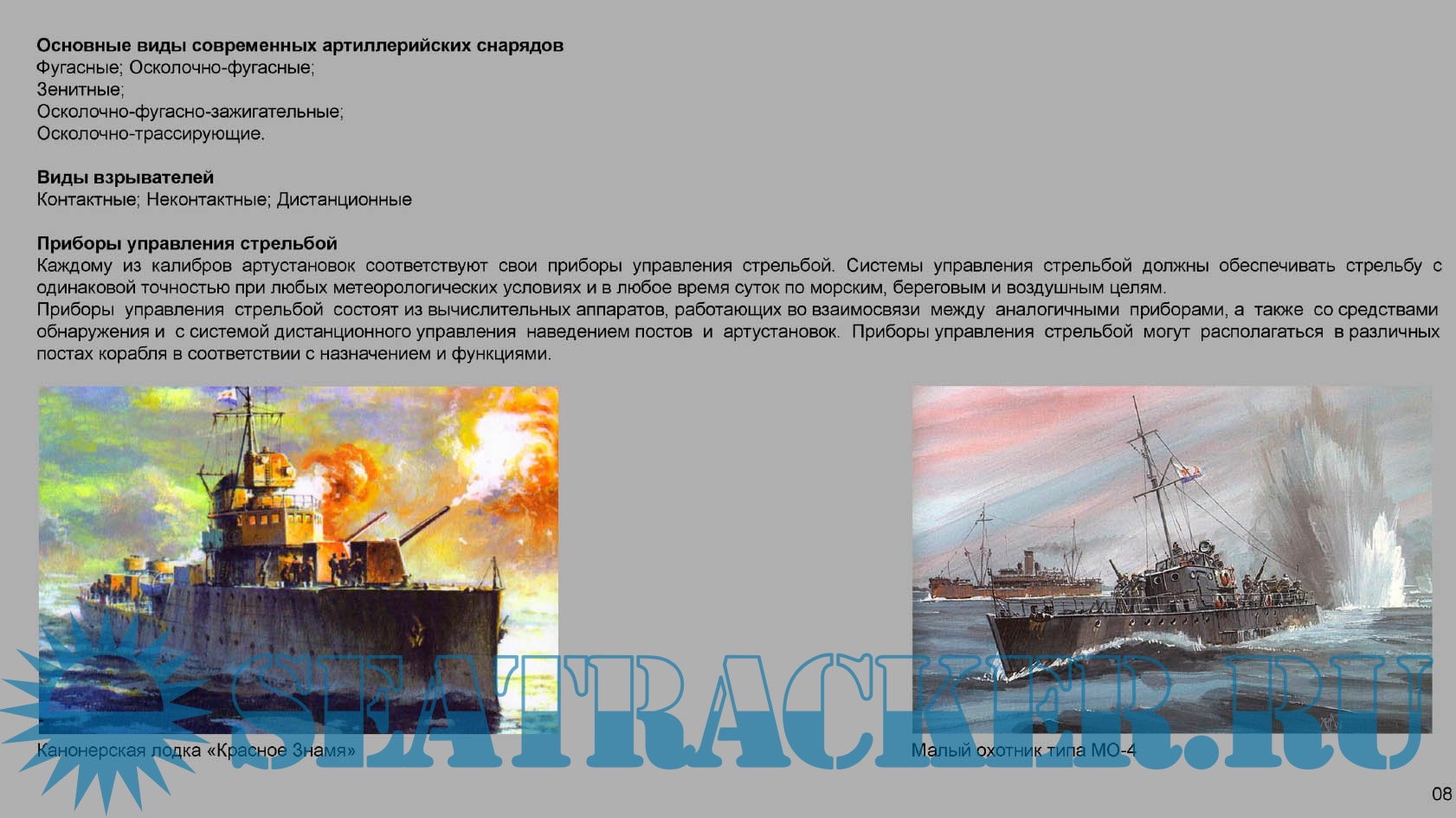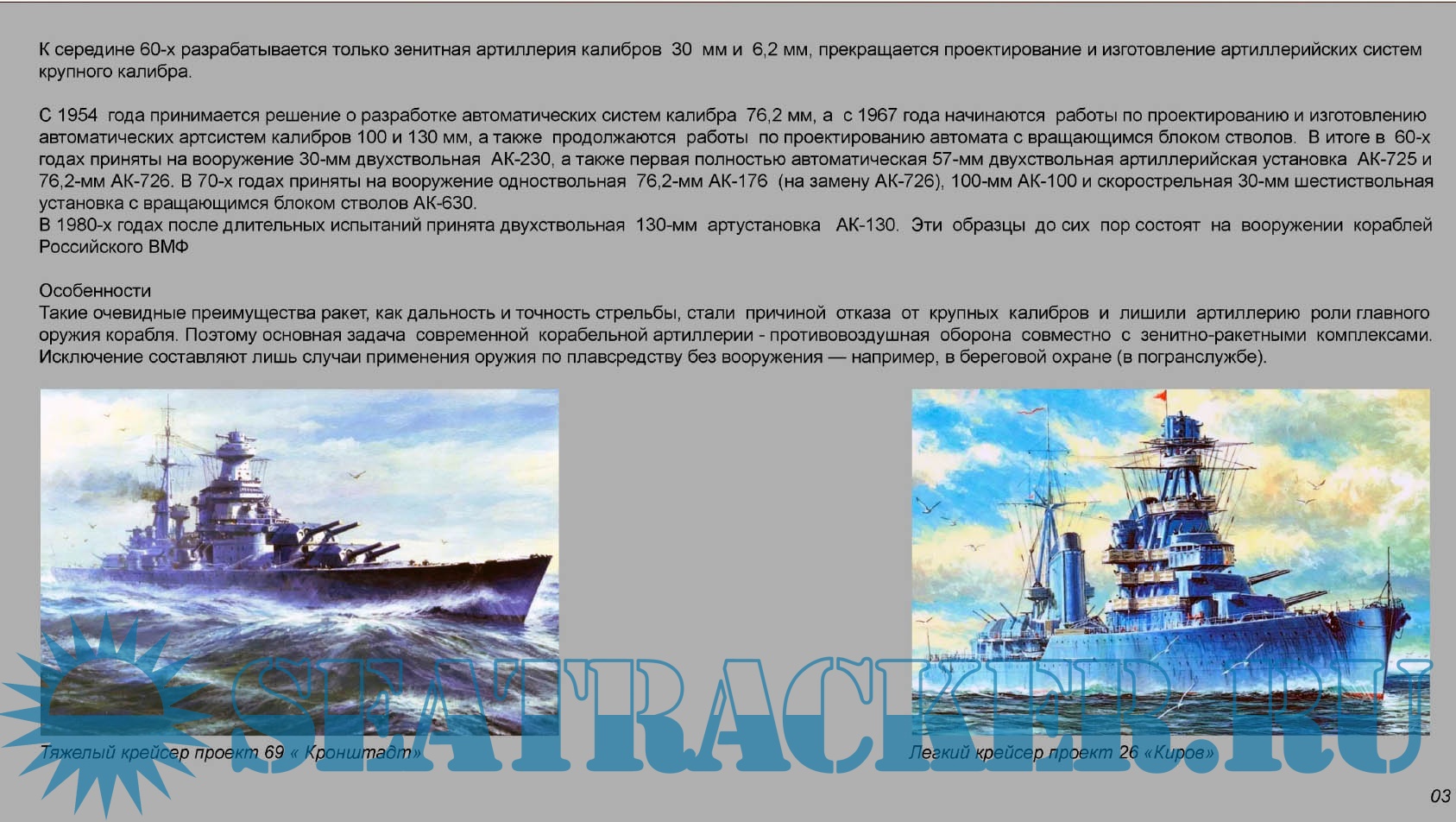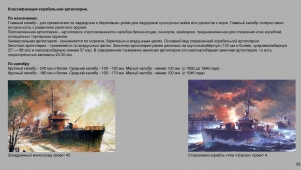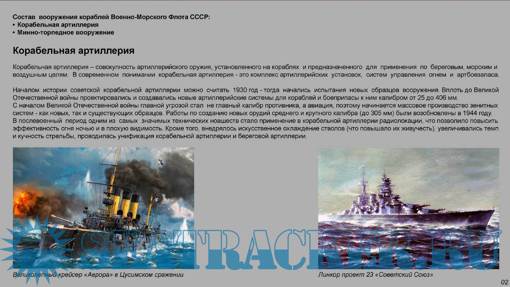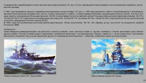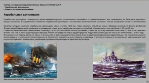Информационные слайды, повествующие о становлении советской корабельной артиллерии