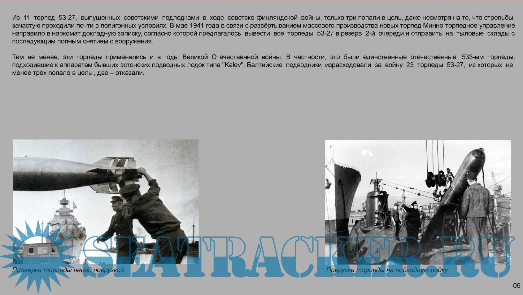 Описание: Сотрудником филиала Центрального военно-морского музея на крейсере "Аврора" К. Г. Мюллером к 75-летию Победы в Великой Отечественной войне подготовлена электронная выставка "Вооружение Военно-Морского Флота СССР. 1930-1960". Она представляет собой информационные слайды, повествующие о становлении минно-торпедного вооружения.