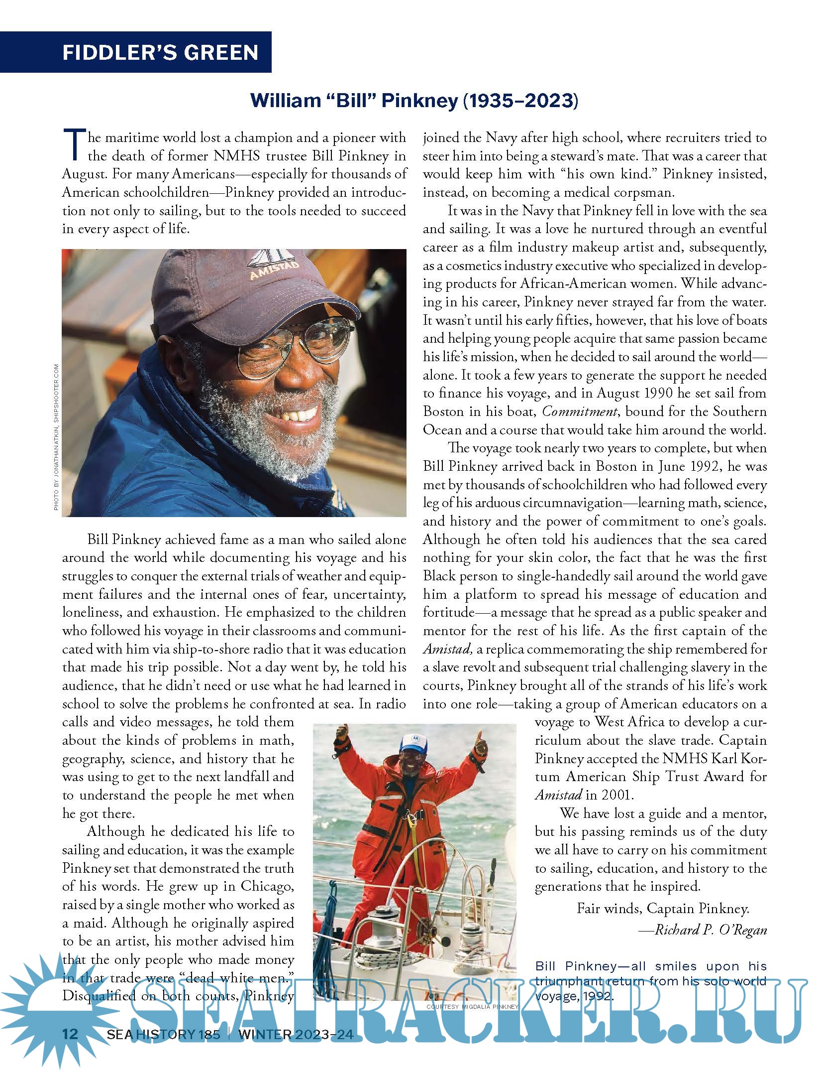 Year: 2023 Language: English Author: National Maritime Historical Society Genre: Periodical (magazine) Format: PDF Quality: eBook Pages count: 84 Description: Discover Sea History! Our seafaring history comes alive in the pages of Sea History, the National Maritime Historical Society’s quarterly magazine. The pre-eminent journal of advocacy and education in our field, Sea History covers the world of maritime museums, sail training, key events and people in our maritime past, and the stories of everyday sailors past and present, and marine archaeology, with a national focus and an international scope, as well as Others regular features. Issue No.185 Winter 2023-2024