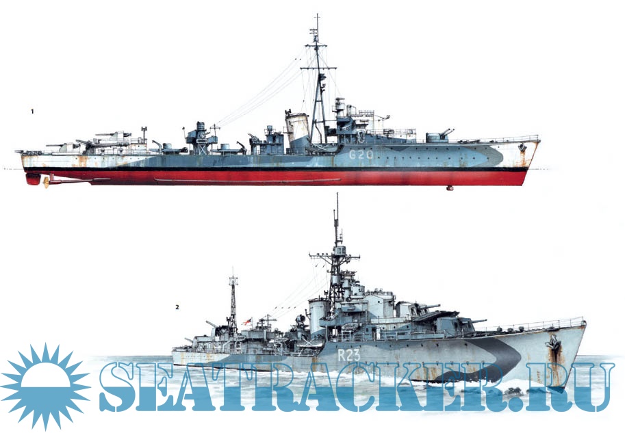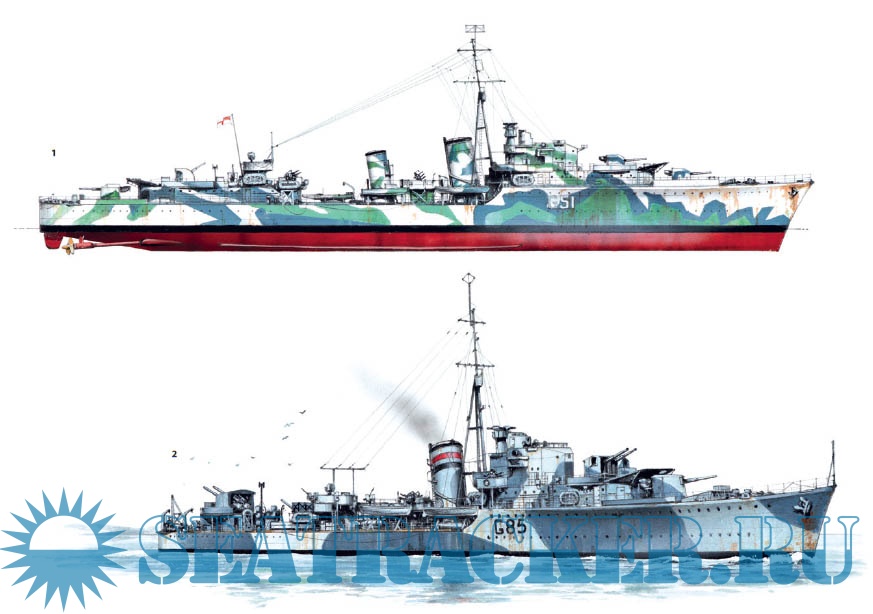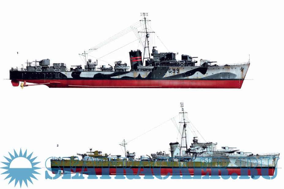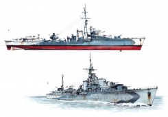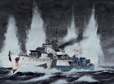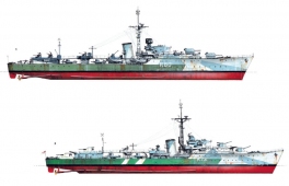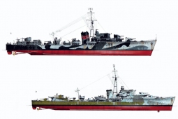 Description: As the possibility of war loomed in the 1930s, the British Admiralty looked to update their fleet of destroyers to compete with the new ships being built by Germany and Japan, resulting in the commissioning of the powerful Tribal-class. These were followed by the designing of the first of several slightly smaller ships, which carried fewer guns than the Tribals, but were armed with a greatly enlarged suite of torpedoes. The first of these, the "J/K/M class" was followed by a number of wartime variants, with slight changes to their weaponry to suit different wartime roles.