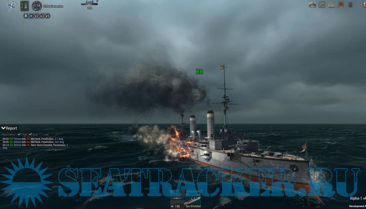 Naval combat becomes immersive and feels even more realistic when your opponent is able to react to your actions with a human-like and unexpected behavior. The AI evaluates the optimal engagement distance, using principles of the “Immunity Zone” and comparing its own firepower versus your ships. The AI uses ammunition wisely, holding fire when necessary or switching shell types according to the armor protection of the target. Unless there is a special mission directive, the AI will not act suicidally and will attempt to withdraw, if its fleet becomes heavily damaged or it is much weaker than yours.