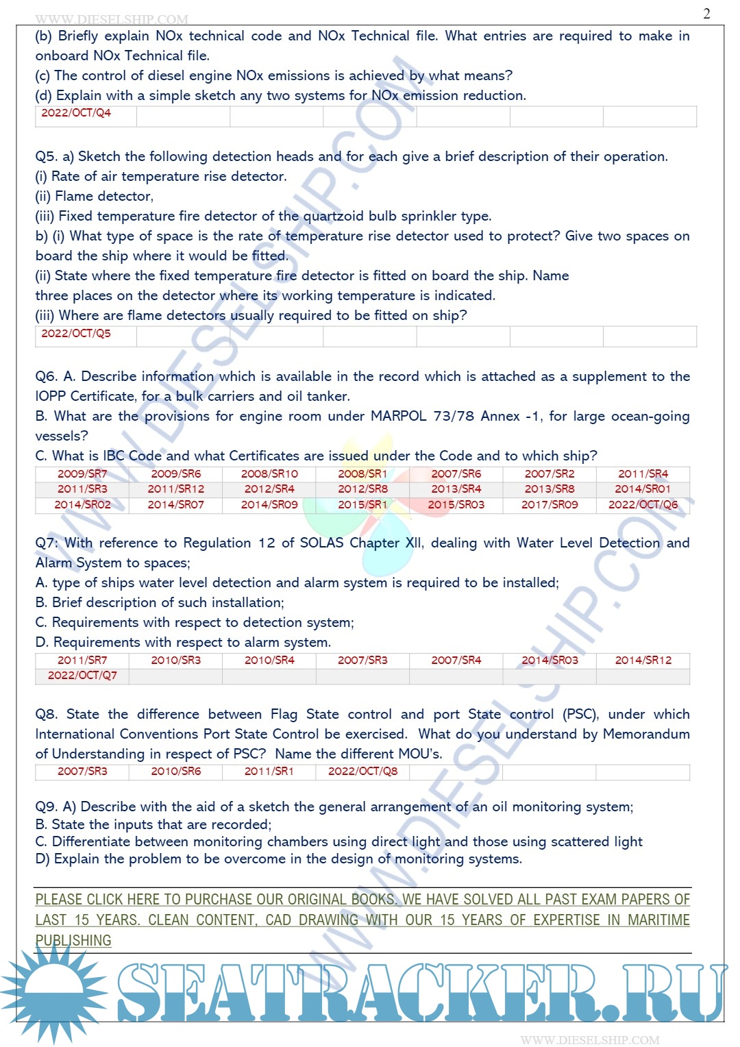 Description: M.E.O. Class II Question Paper set for Mercantile Marine Department (MMD), D.G. Shipping India Exams.