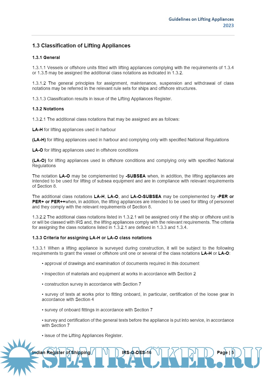Year: 2023 Language: English Author: Indian Register of Shipping Genre: Guide Publisher: Indian Register of Shipping Format: PDF Quality: eBook Pages count: 64 Description: This document provides requirements for design, construction, and survey of lifting appliances fitted onboard ships and/ or fixed/ floating offshore structures. When certification is carried out for compliance with statutory regulations, any additional requirements stipulated therein will also complied with. (Effective 01 July 2024)