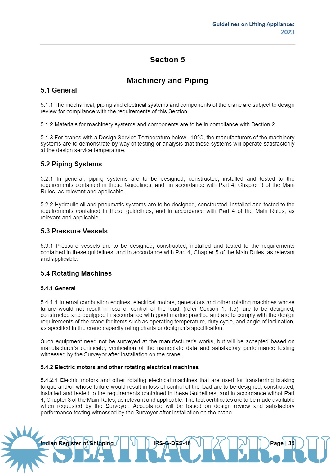 Description: This document provides requirements for design, construction, and survey of lifting appliances