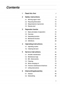 Description: This manual is designed for operators and service engineers working with the Alfa Laval separator MAB 103B-24. For information concerning the function of the separator, see ‘‘3 Separator basics” on page 17, and ‘‘4 Operating instructions” on page 31. If the separator has been delivered and installed by Alfa Laval as part of a processing system, this manual is a part of the System Manual. In this case, study carefully all the instructions in the System Manual. In addition to this Separator manual a Spare Parts Catalogue, SPC is supplied. This Separator manual consists of: Safety instructions Pay special attention to the safety instructions for the separator. Not following the safety instructions can cause accidents resulting in damage to equipment and serious injury to personnel. Separator basics Read this chapter if you are not familiar with this type of separator. Operating instructions This chapter contains operating instructions for the separator only.
