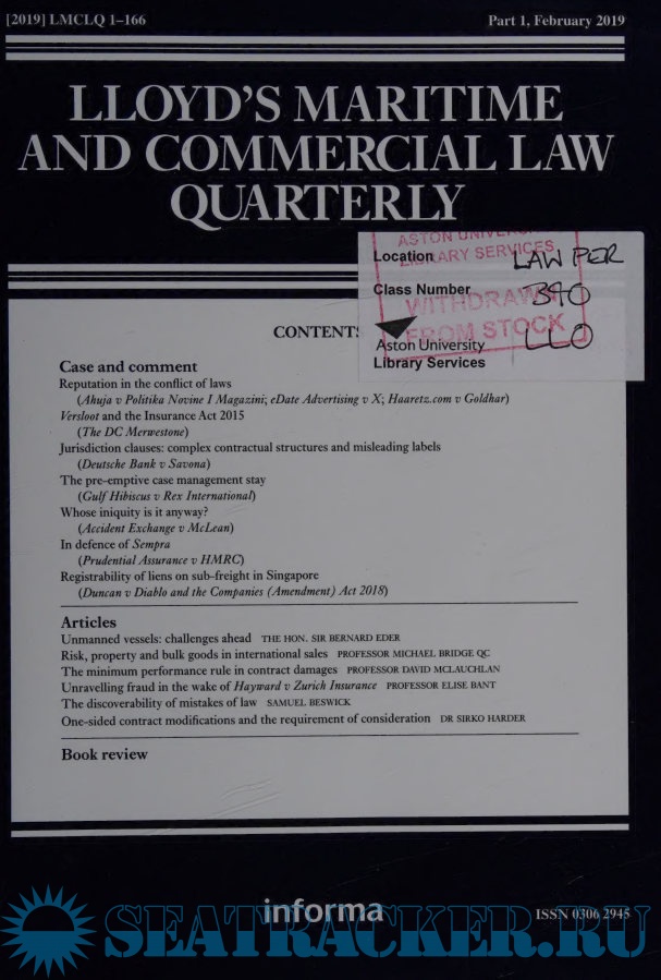 Description: Lloyd’s Maritime and Commercial Law Quarterly is the leading journal internationally on all