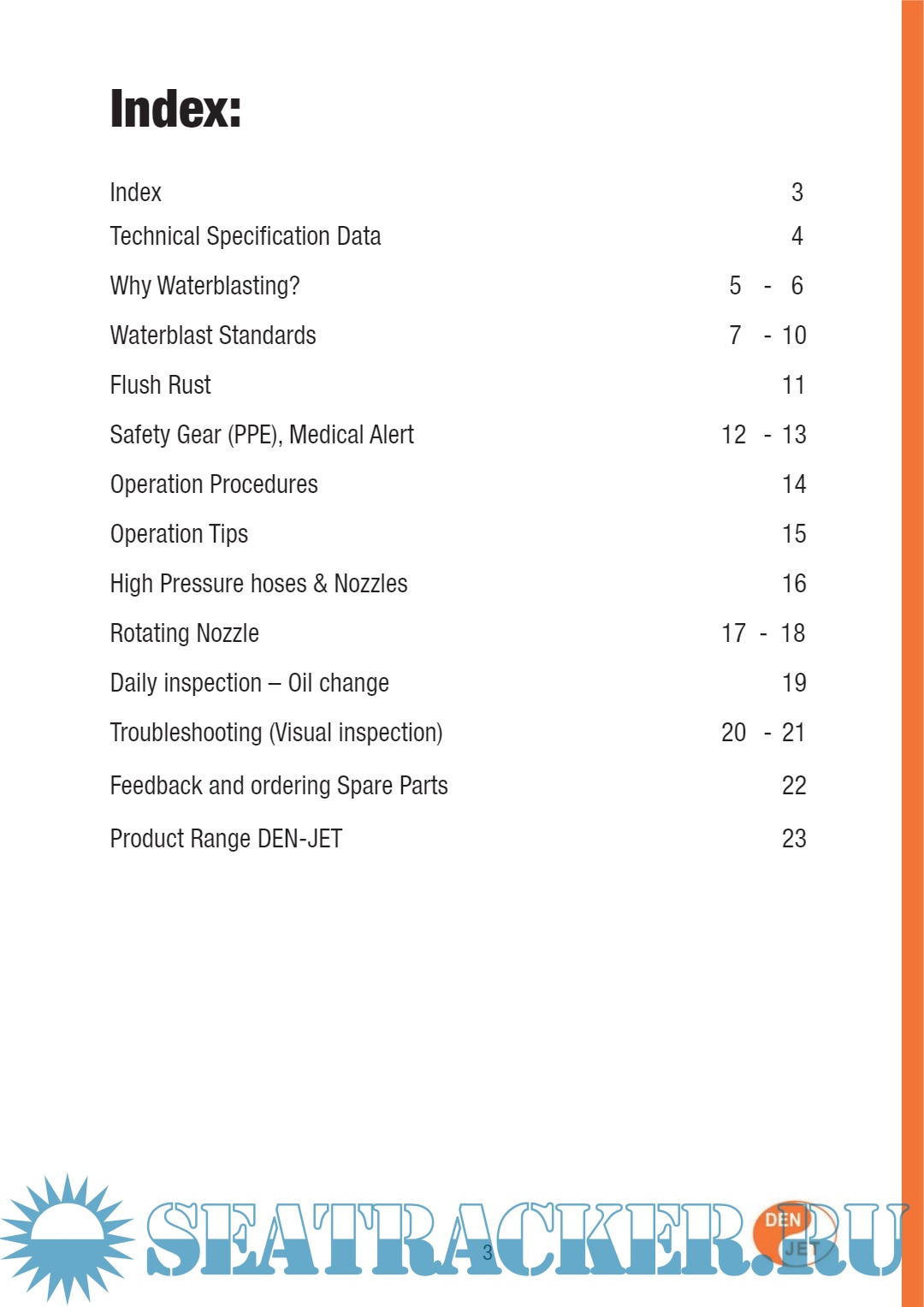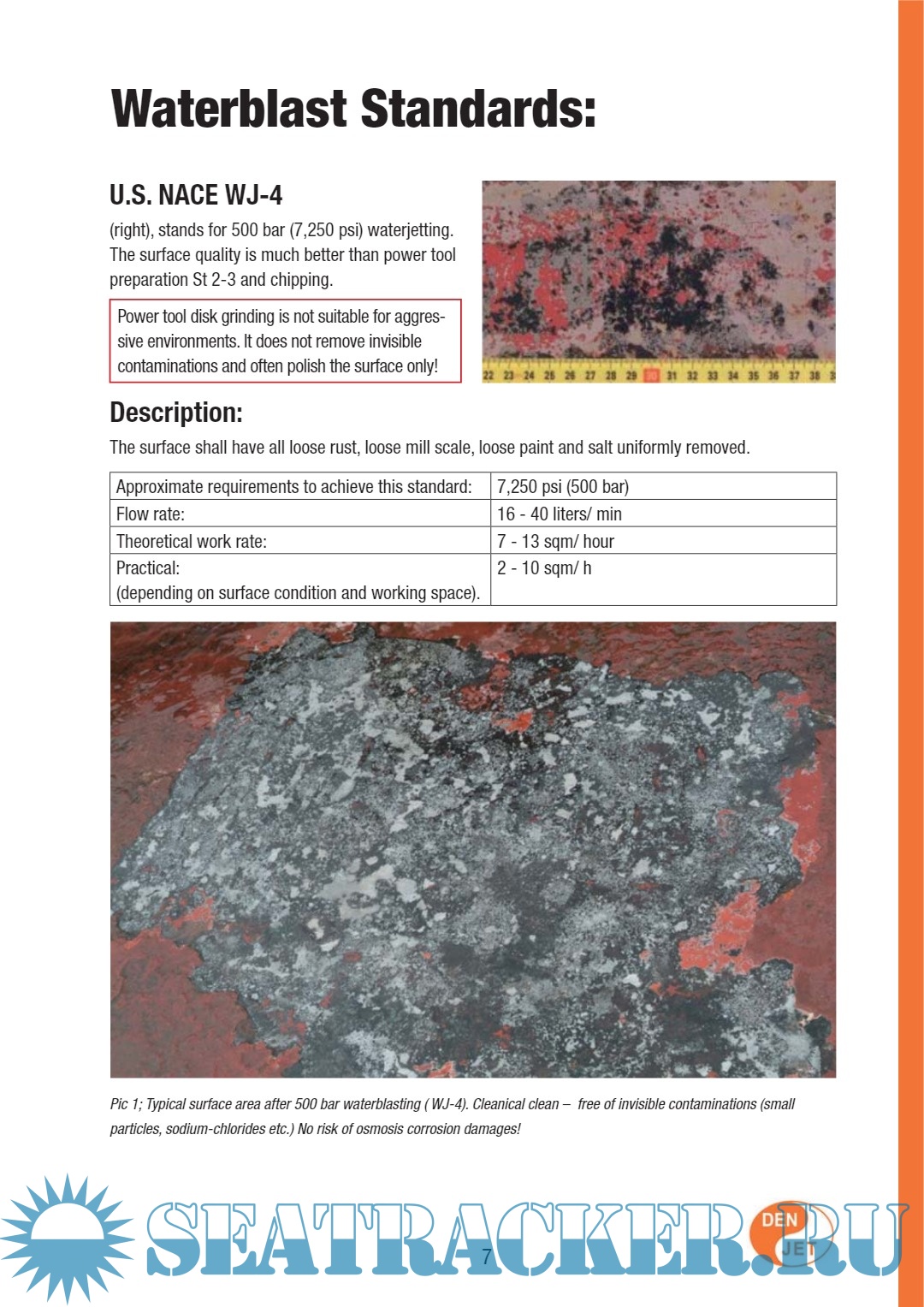 Description: DEN-JET CE20-500 WATERBLASTER (MasterMariner500/7250 psi) manual describes the operation procedure of the equipment including corrosion