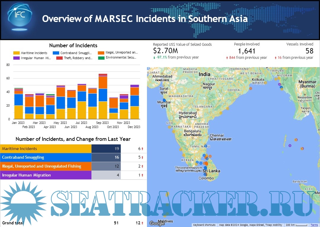 Year: 2023 Language: English Author: Information Fusion Centre Publisher: Information Fusion Centre Format: PDF Quality: eBook Pages count: 45 Description: Monthy Reports & Overview of MARSEC Incidents in the Information Fusion Centre Area of Interest.